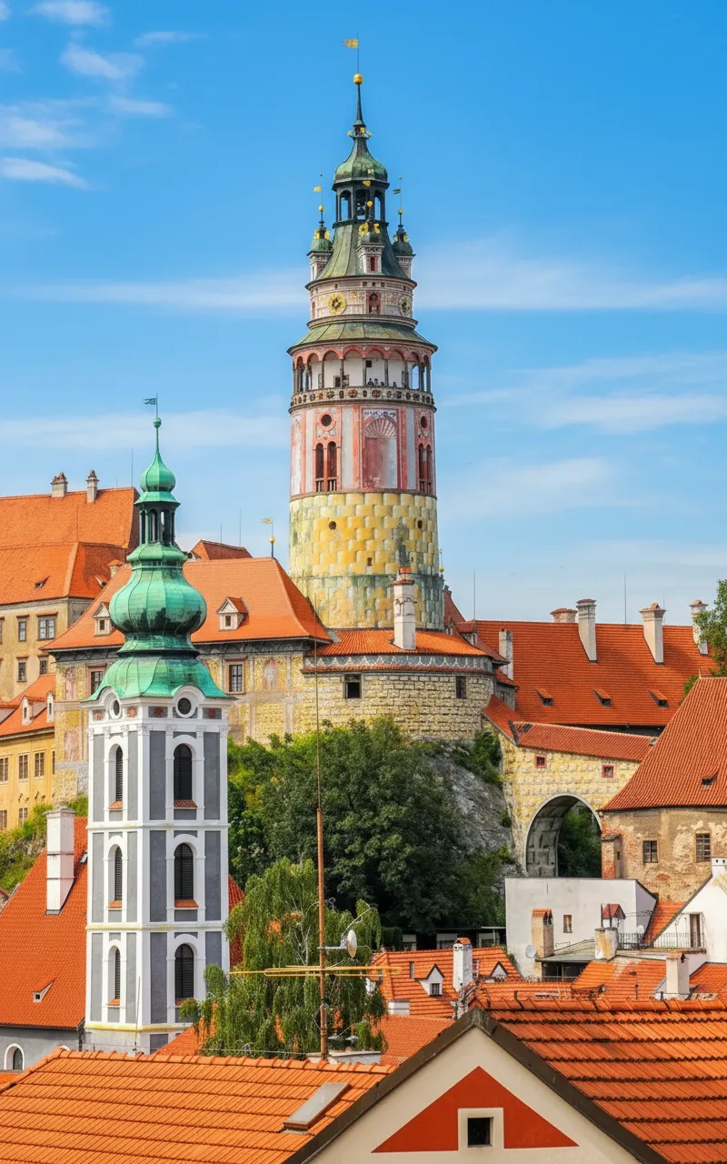 The Castle Tower is one of the most recognizable landmarks within the Český Krumlov Castle complex in Czechia. Its colorful Renaissance design and elevated position make it a focal point of the town’s historic skyline. Climbing the tower rewards visitors with sweeping panoramic views of the Old Town rooftops, winding Vltava River, and surrounding countryside. The viewpoint offers one of the best perspectives of Český Krumlov. For travelers, the Castle Tower provides an unforgettable visual overview of the town and is a must-visit spot for photography.