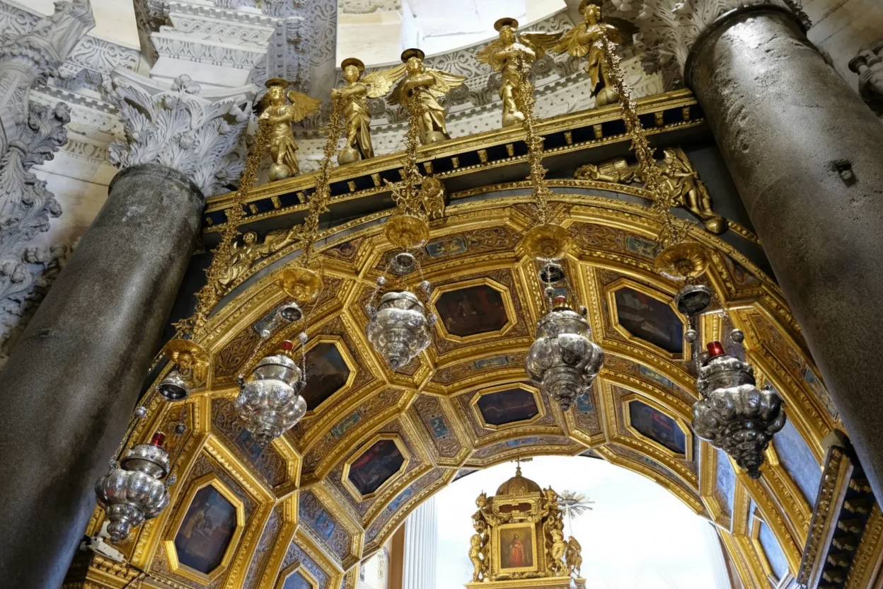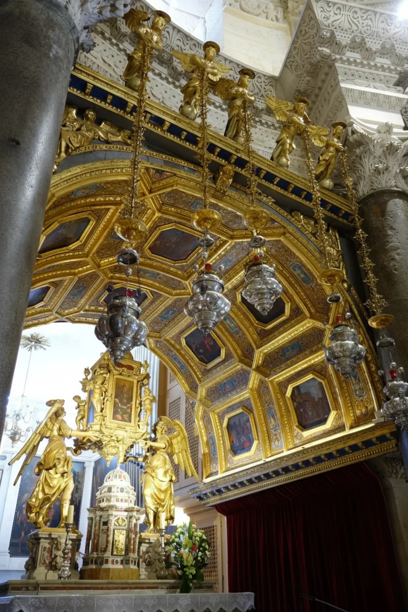 - ⛪ Explore the stunning historic cathedral 🏛️ interior and ancient altar 🕯️
