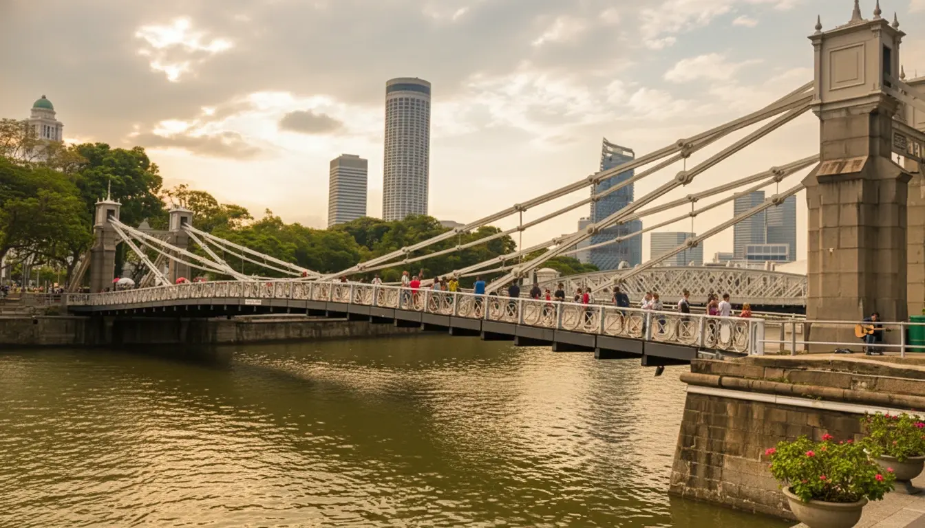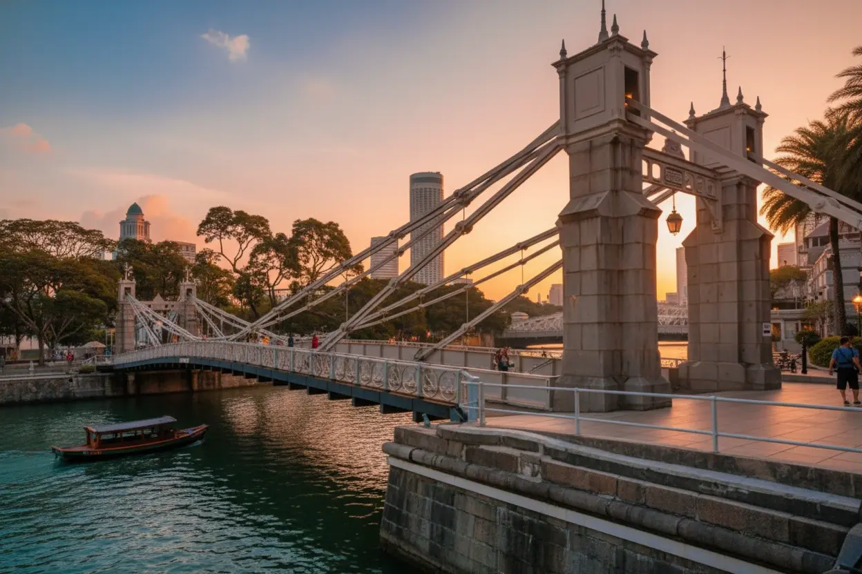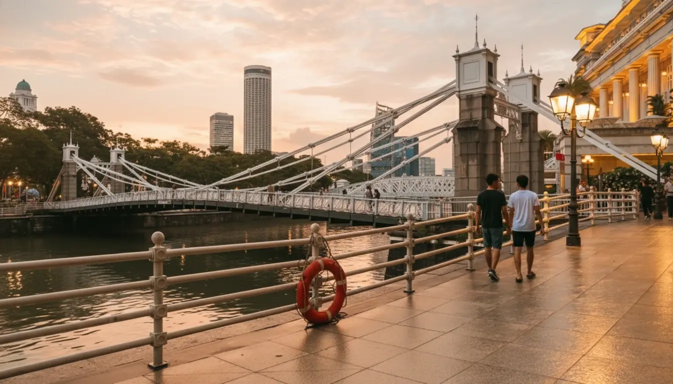 • 6:00 PM – Arrive 🧭 at Cavenagh Bridge 🌉 and explore the riverside area 🌊💨