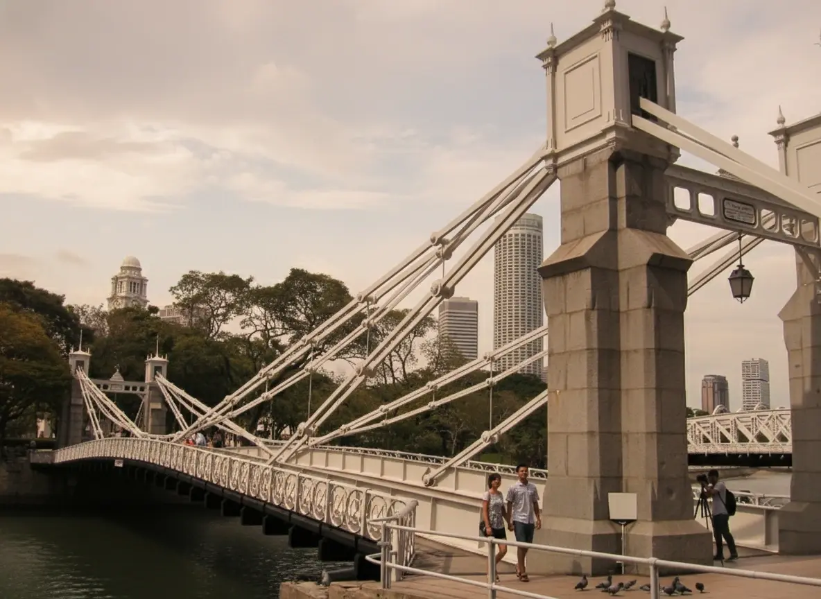 Cavenagh Bridge, completed in 1869, is the oldest suspension bridge in Singapore and one of the city’s most enduring colonial landmarks. It spans the Singapore River near the Fullerton Hotel, linking the Civic District to the bustling Clarke Quay area. This elegant cast-iron bridge has been beautifully preserved and stands as a symbol of Singapore’s history and architectural heritage.