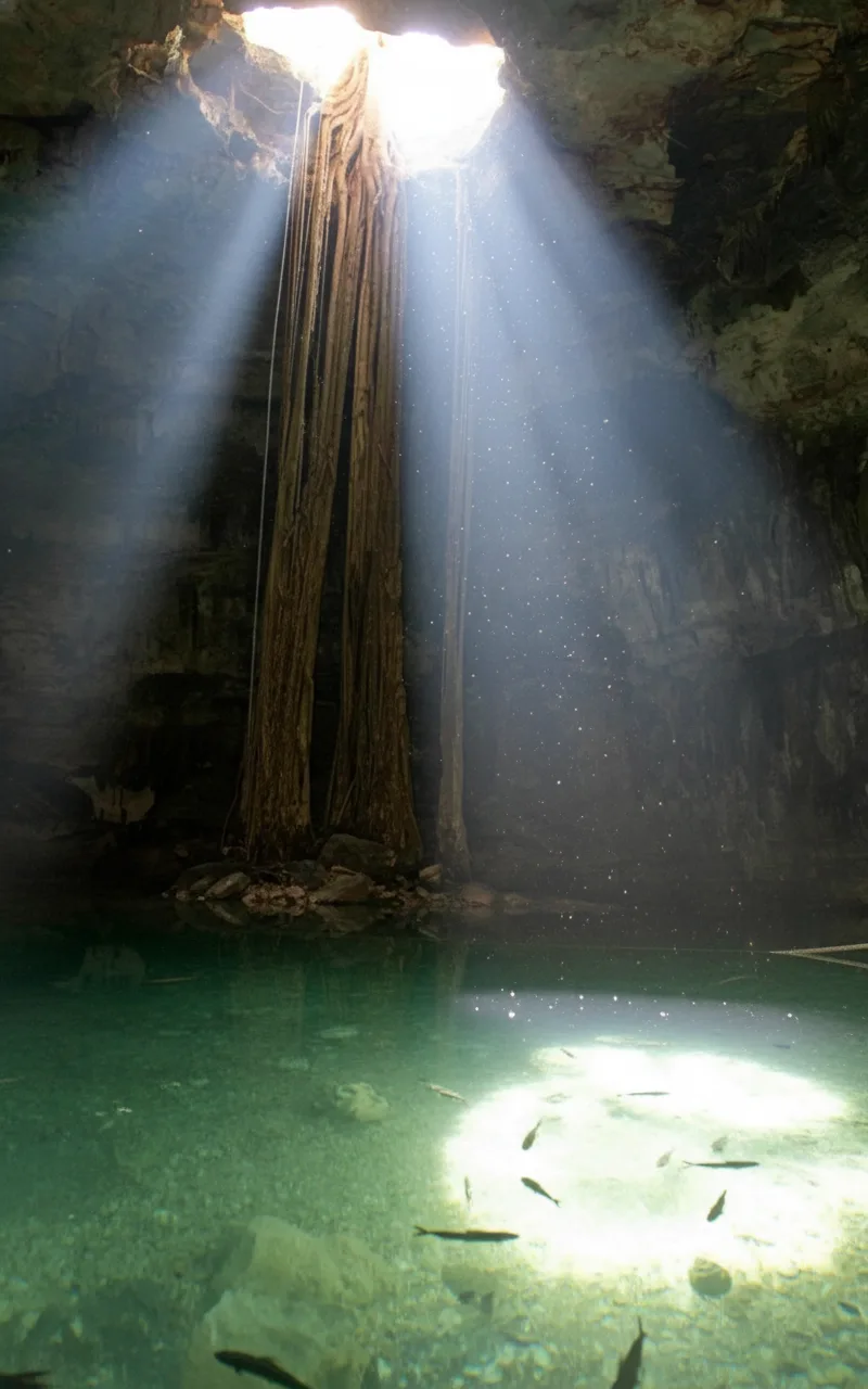 Cenote Samulá is a breathtaking underground cenote located near Valladolid, Yucatán, Mexico. Known for its massive cavern, high stone ceiling, and strong beams of natural light, this cenote offers a powerful and memorable natural experience. It is located close to Cenote Xkekén and is often visited together.