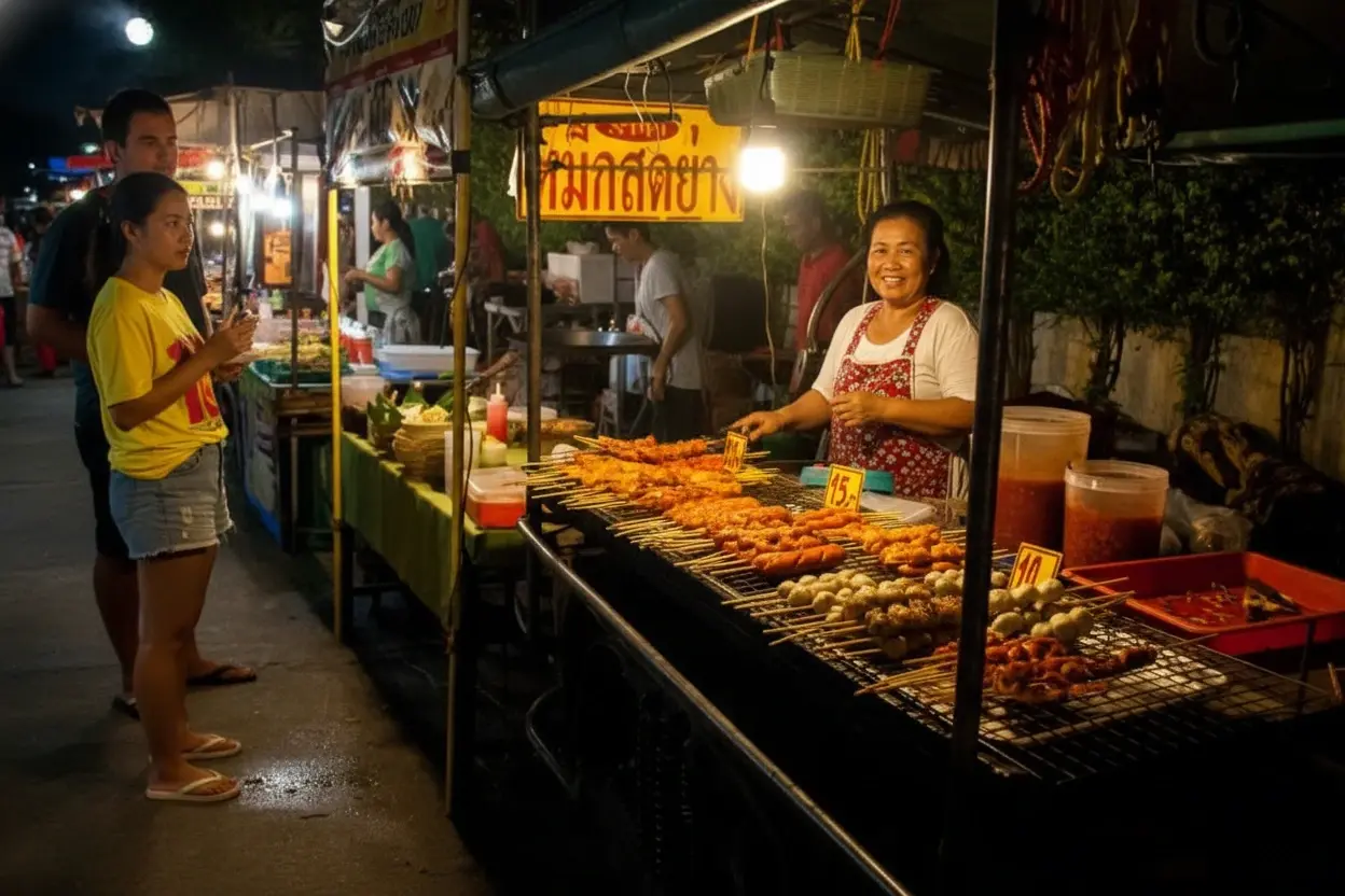 • Try authentic dishes 🍜 like boat noodles 🛶, grilled pork skewers 🥓, and Thai iced tea 🍹🧊