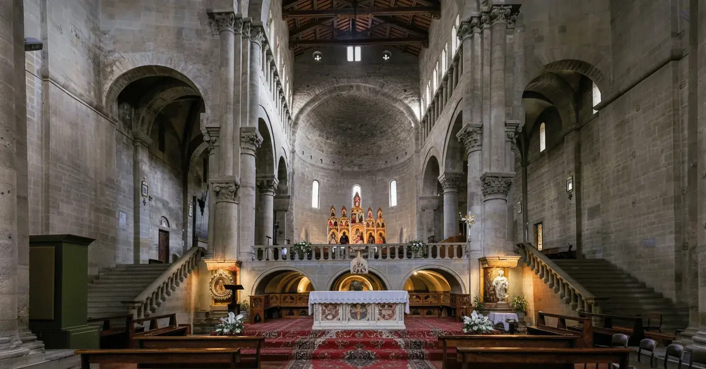• 10:00 AM – Enter the church 🚪 to admire Lorenzetti’s altarpiece 🖼️ and Romanesque interior 🙏👀