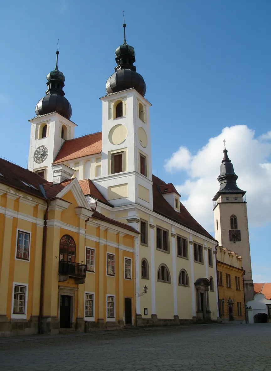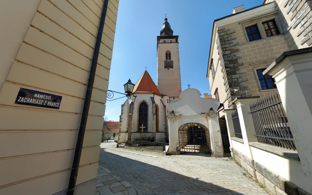 The Church of St. James is a historic Gothic structure situated near the main town square of Telč. As one of the oldest religious buildings in the area, it is recognized for its prominent stone tower and serene interior