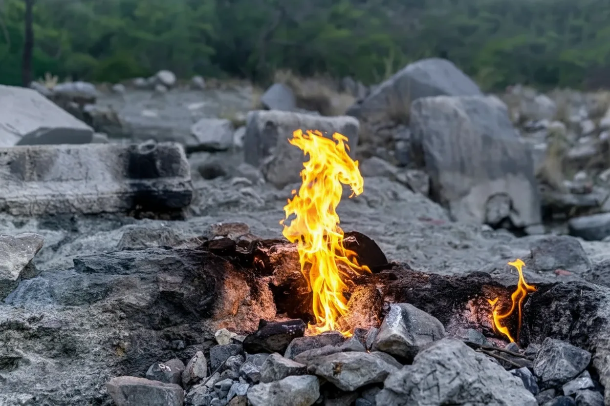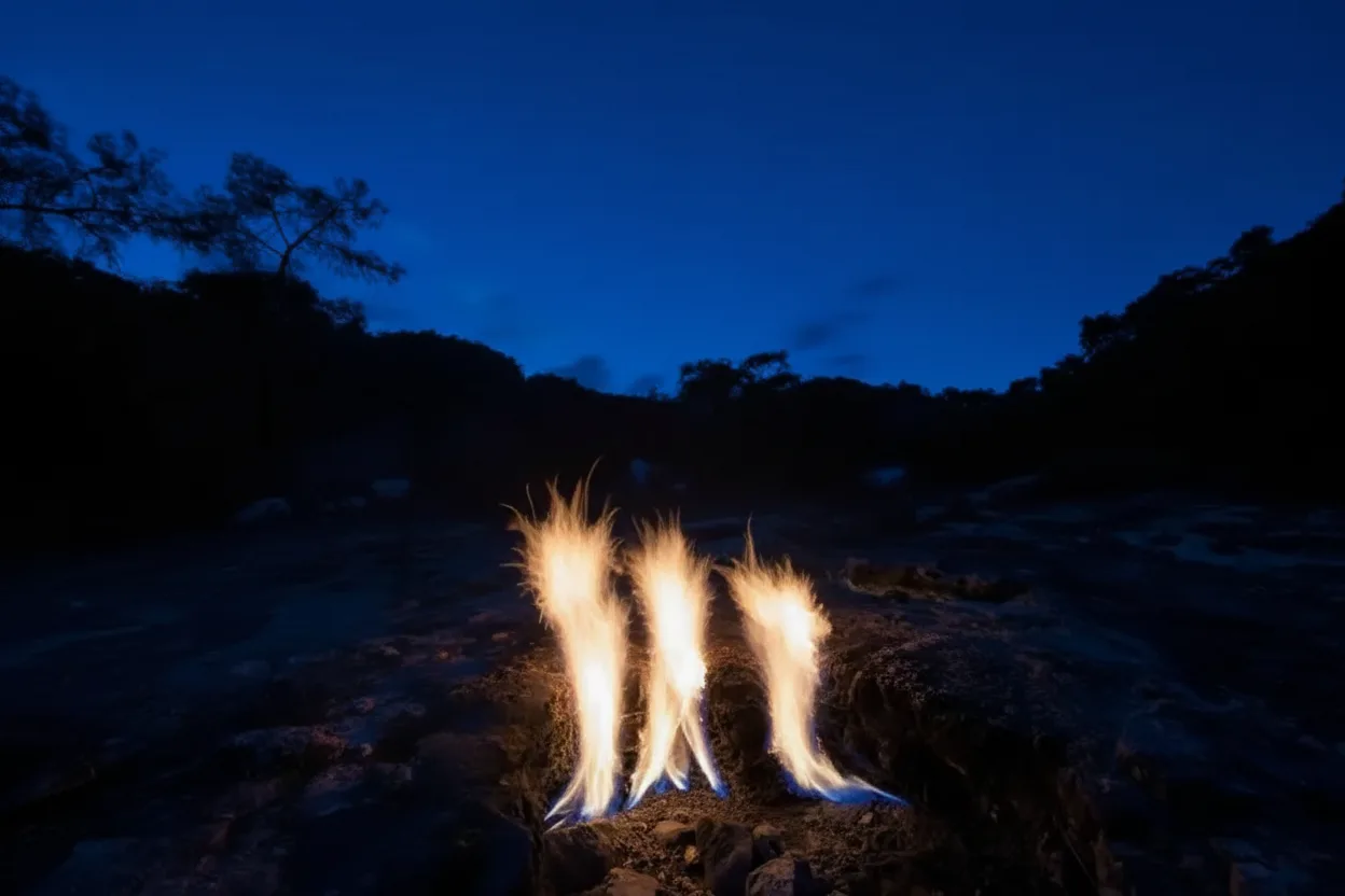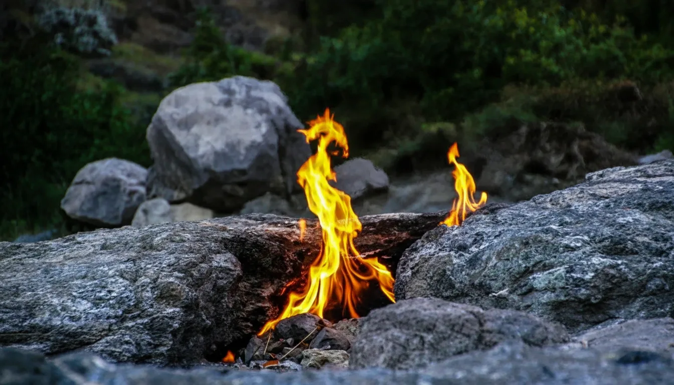 • ✨ View the mesmerizing natural flames that emerge directly from the ancient rocks 🗿 through geological gas vents 🌬️