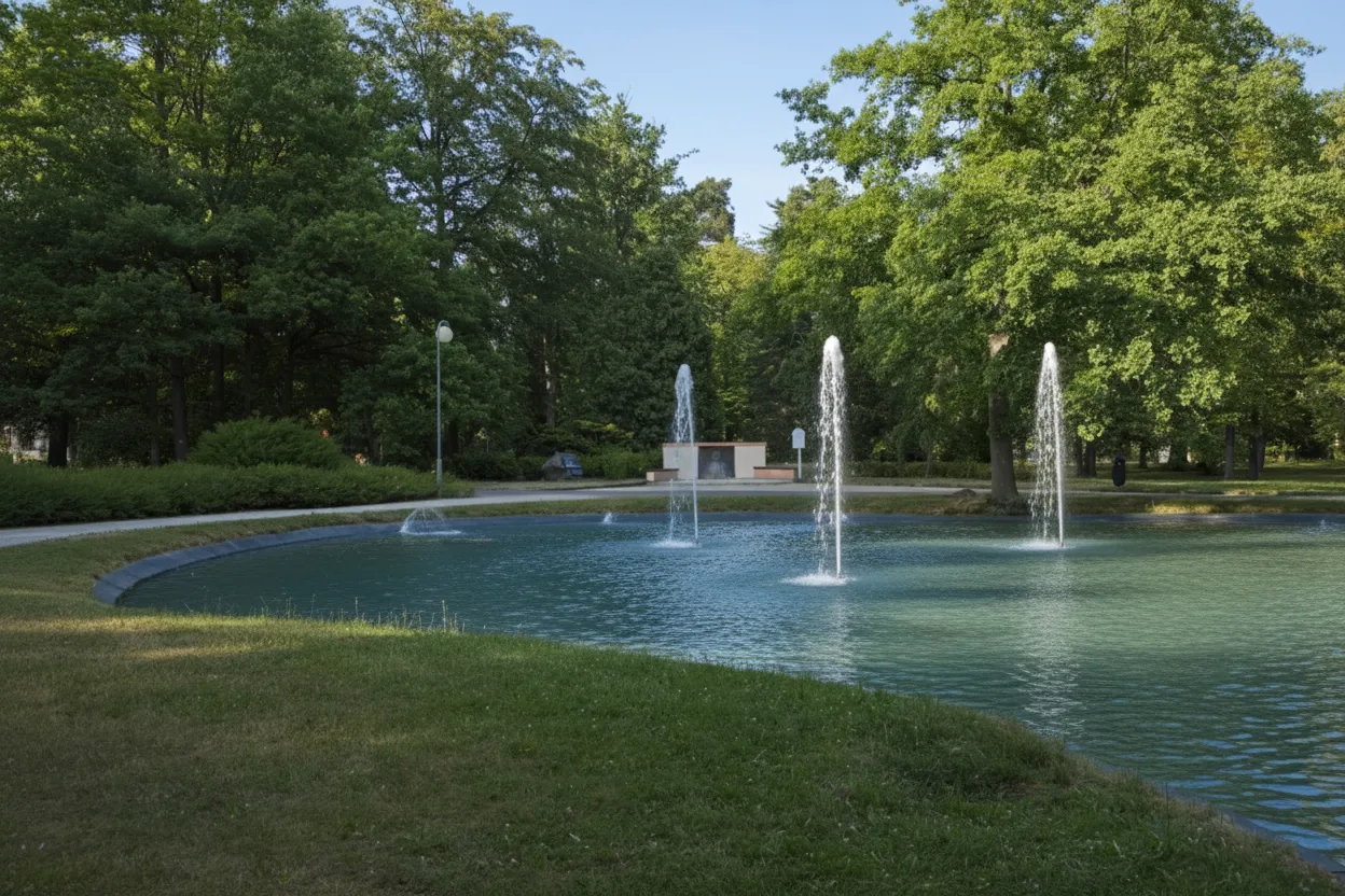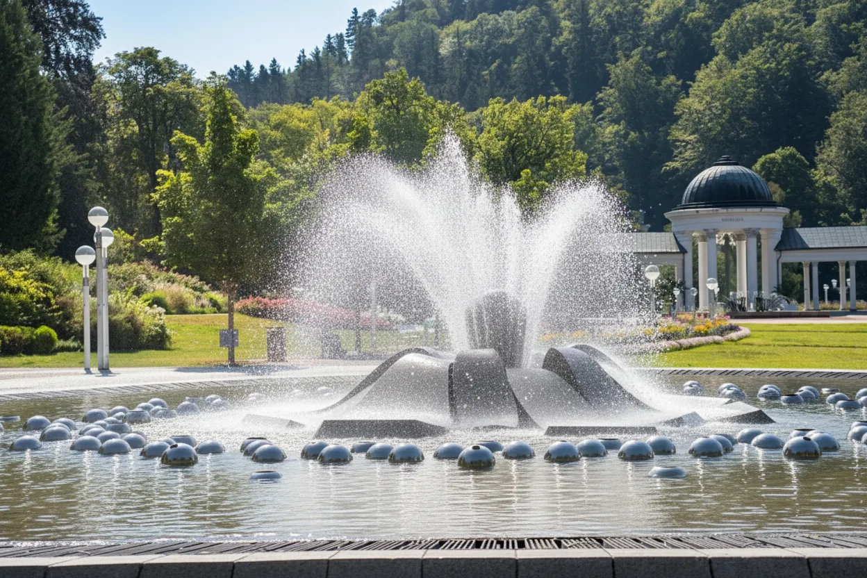 Wide paths, trees, lawns, and seating areas make the park ideal for gentle walks and rest between spa visits.