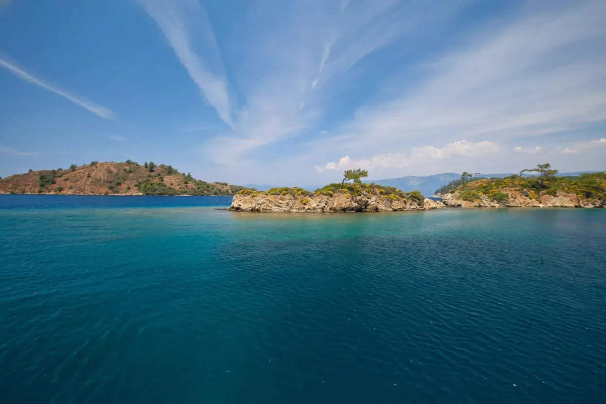 Cleopatra Island, also known as Sedir Island, is a small and beautiful island near Marmaris. It is famous for its soft white sand and clear turquoise water. The island is protected, making it a peaceful destination for travelers who enjoy nature, swimming, and quiet surroundings