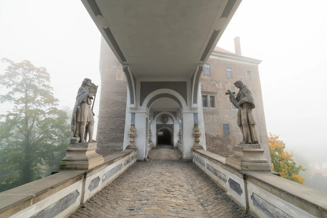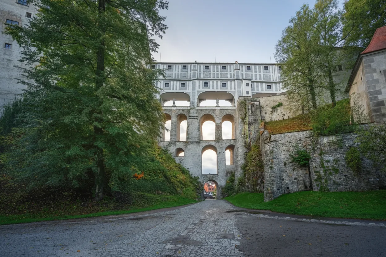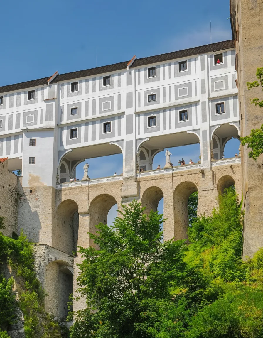 The Cloak Bridge is a unique multi-level stone bridge located within the Český Krumlov Castle complex in Czechia. Built in the 18th century, the bridge connects different parts of the castle while standing high above the castle moat. Its layered arches and covered corridors give the bridge a distinctive appearance. From the bridge, visitors can enjoy elevated views of the castle courtyards and surrounding landscape. For travelers, the Cloak Bridge offers both architectural interest and scenic viewpoints, making it a key highlight within the castle grounds.