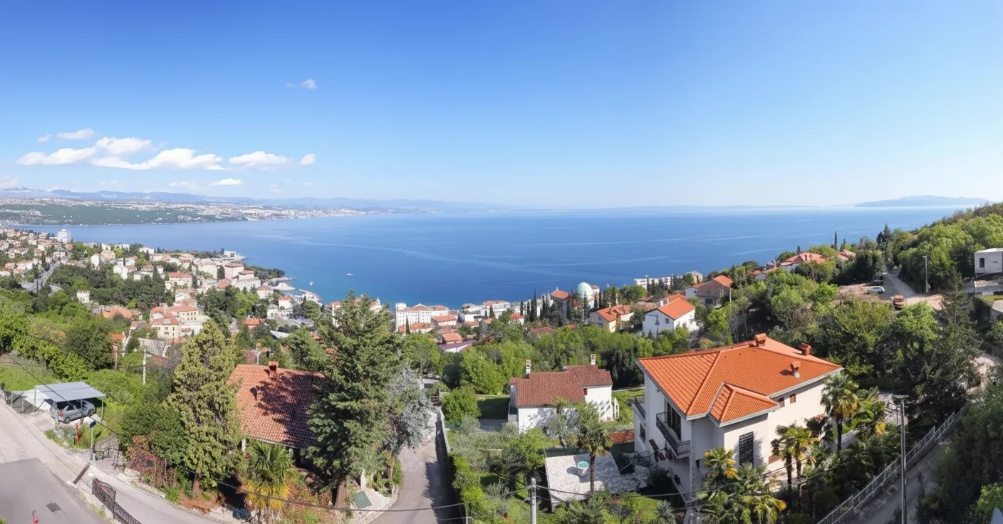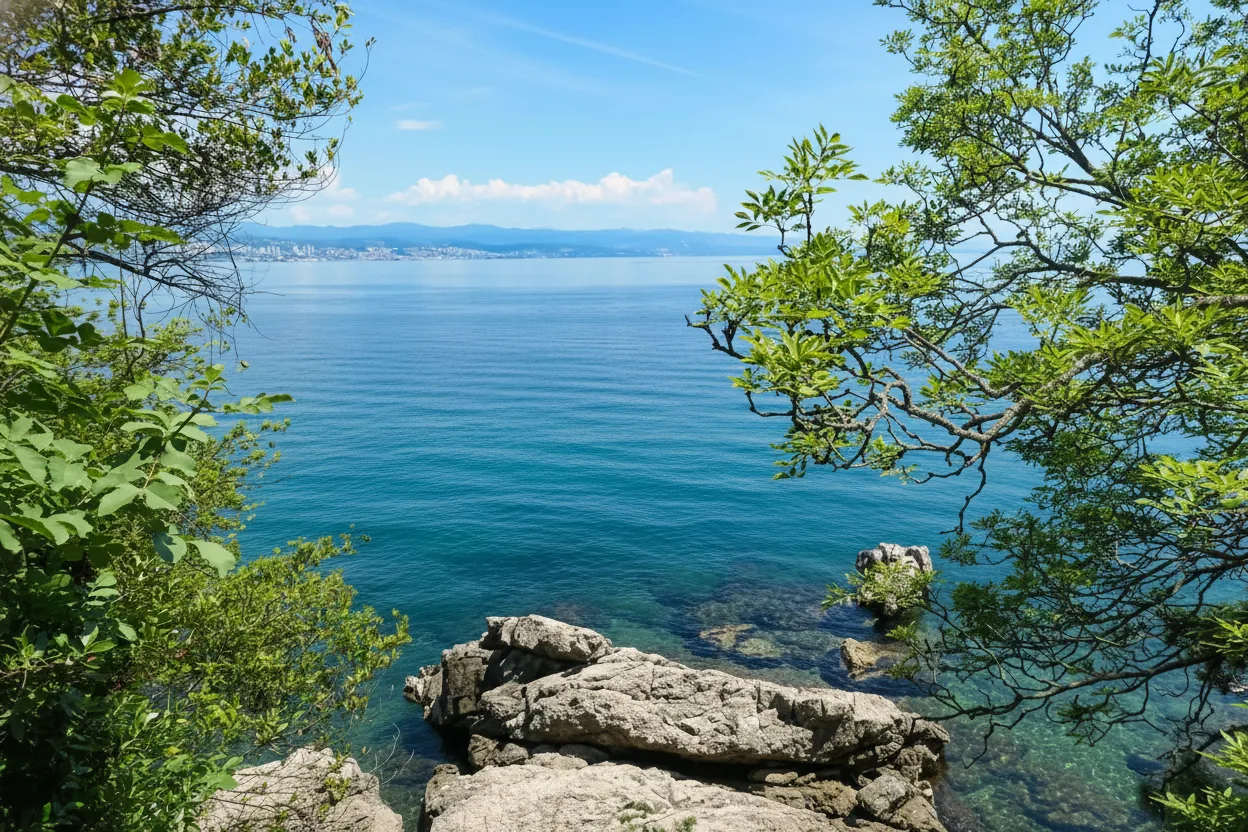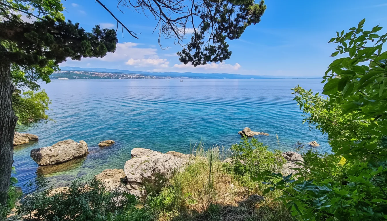 Coastal viewpoints around Opatija offer beautiful perspectives of the Adriatic Sea, rocky shoreline,