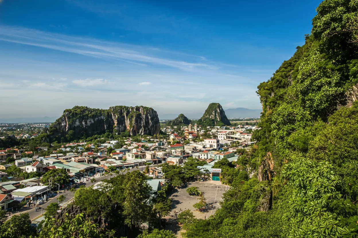 Coastal walking paths near the Marble Mountains in Da Nang offer a quiet and relaxing