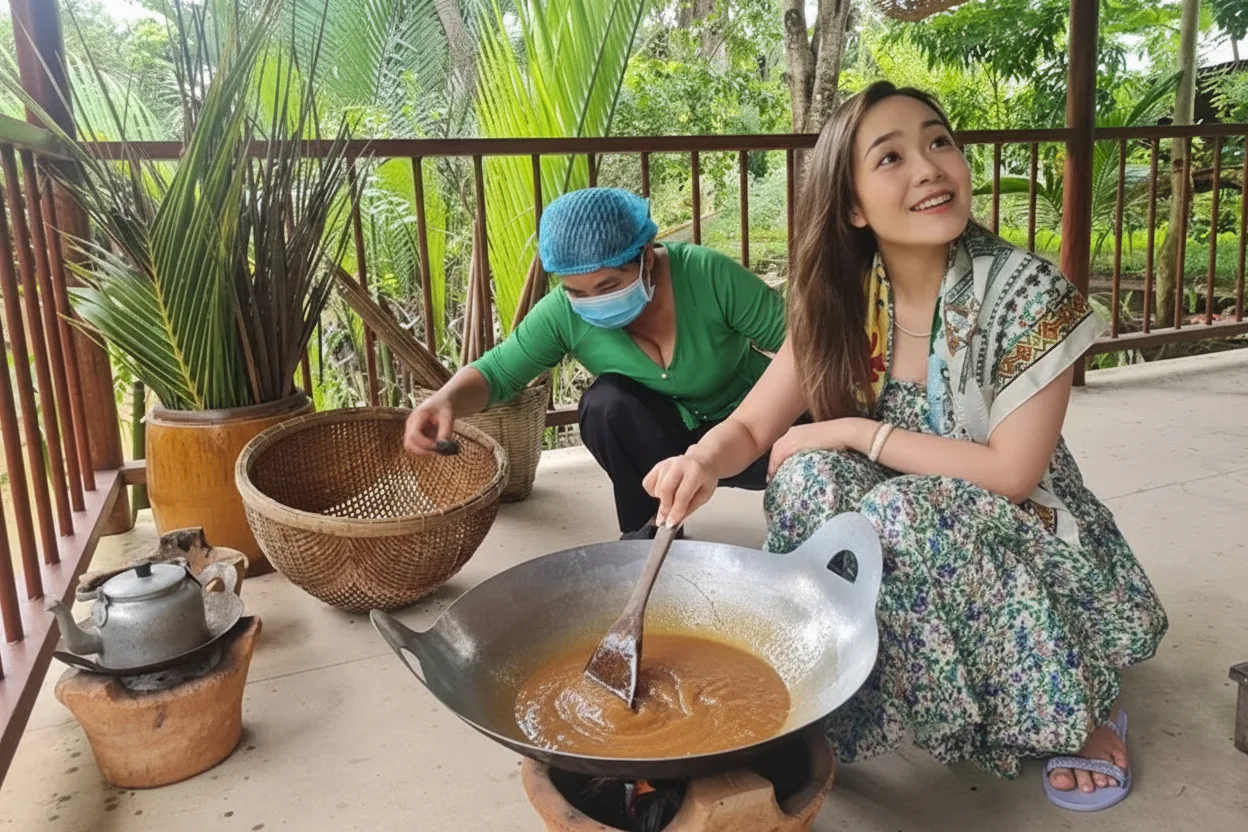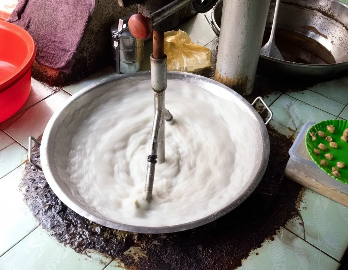 • 🕒 14:00 – Observe the rhythmic production process as the coconut mixture thickens over heat 🔥