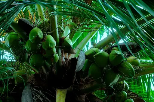 Coconut plantations cover miles of land, yielding products like coconut oil, coir, toddy, and desiccated
