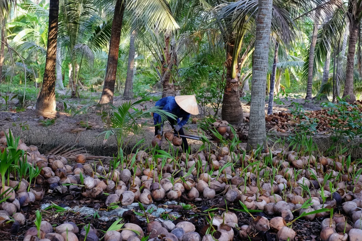 • 🥥 Observe the intensive coconut harvesting and processing 🚜 🥥