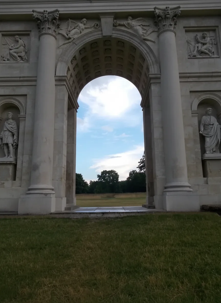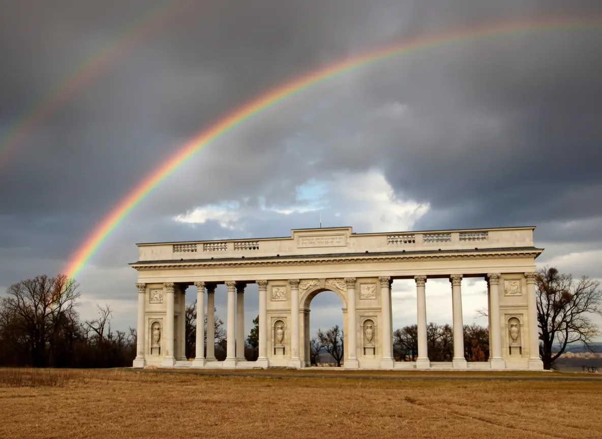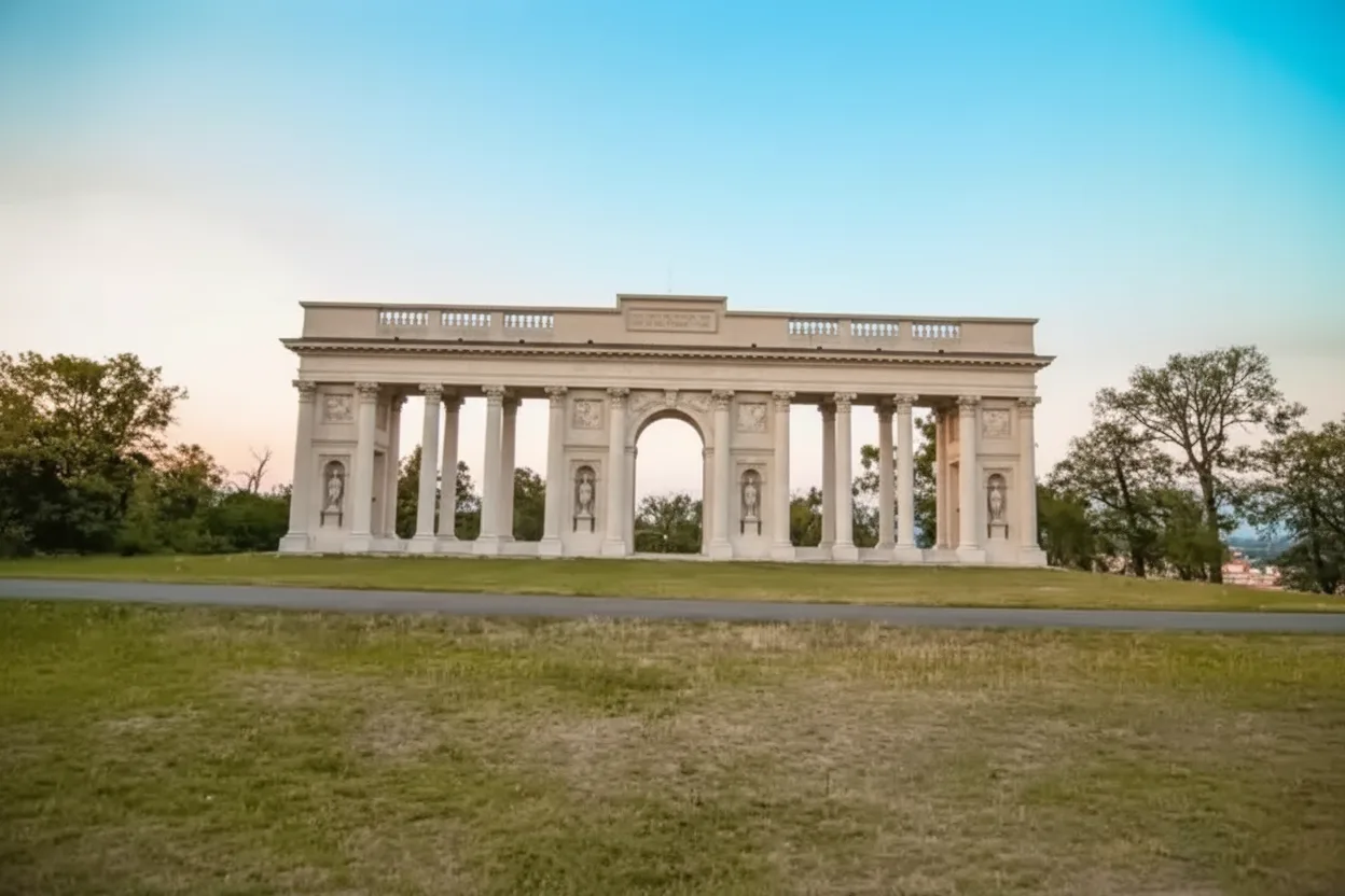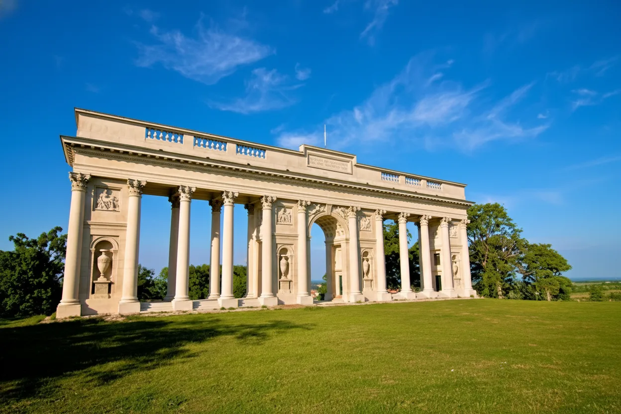 - 🏛️ Walk beneath the towering columns of the historic limestone structure 🏛️