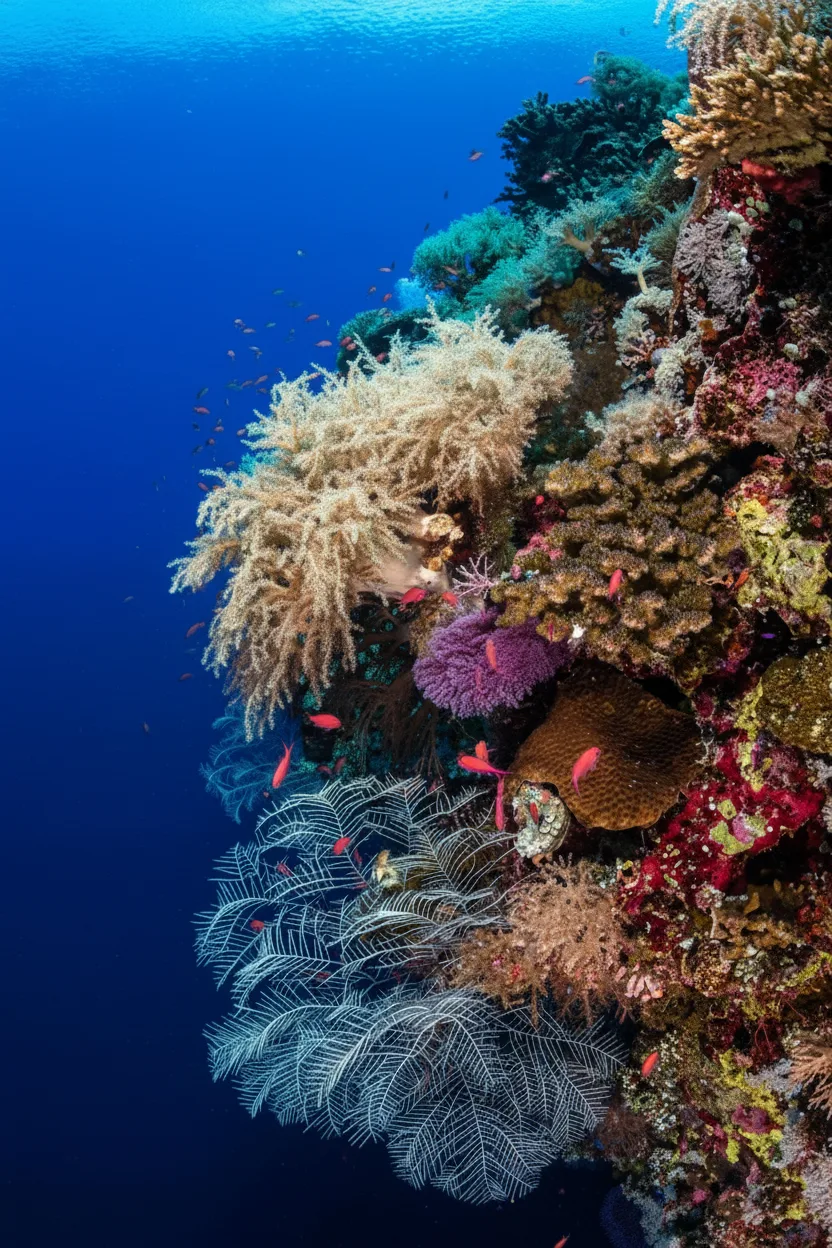 • 🌊 Scuba diving along reef 🐚 slopes and impressive rock formations 🏔️