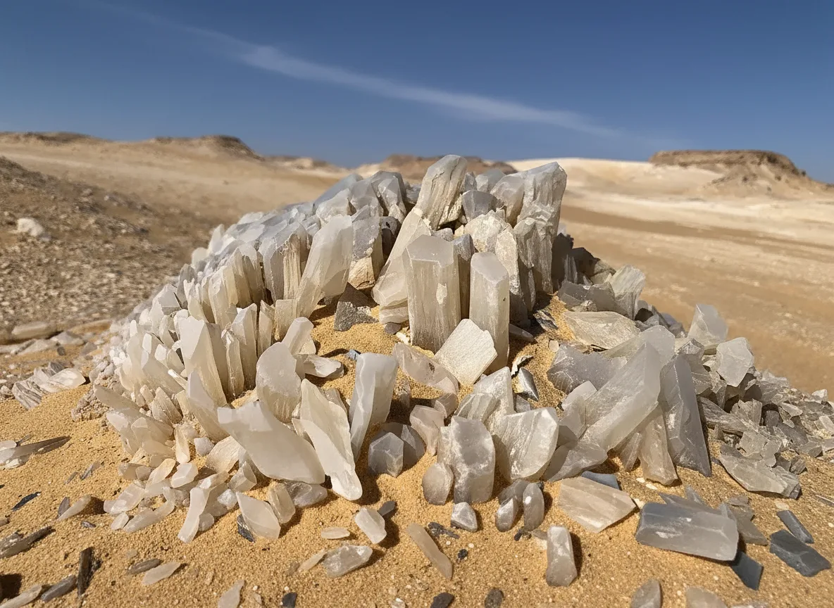 Crystal Mountain is a small but striking natural landmark located near Egypt’s White Desert. The hill is covered with quartz crystal formations that reflect sunlight, creating a subtle shimmering effect across its surface. This site is often visited as a short stop during desert journeys, offering a contrast to the chalk formations nearby. Its sparkling appearance makes it a unique highlight of the Western Desert.