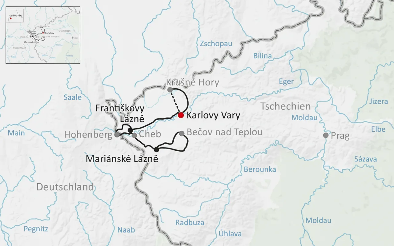📌• Cycling Routes, Františkovy Lázně, Karlovy Vary Region, Czechia • Routes extend around the town and into nearby countryside