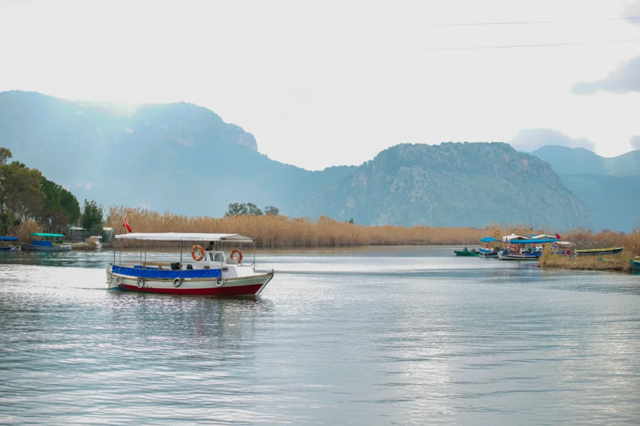 Dalyan Boat Tours provide a relaxing way to explore the natural beauty of the Dalyan River and surrounding wetlands. The slow boat journeys pass through reed channels, ancient Lycian rock tombs, and peaceful landscapes, making it one of the most popular activities in the Dalyan area.