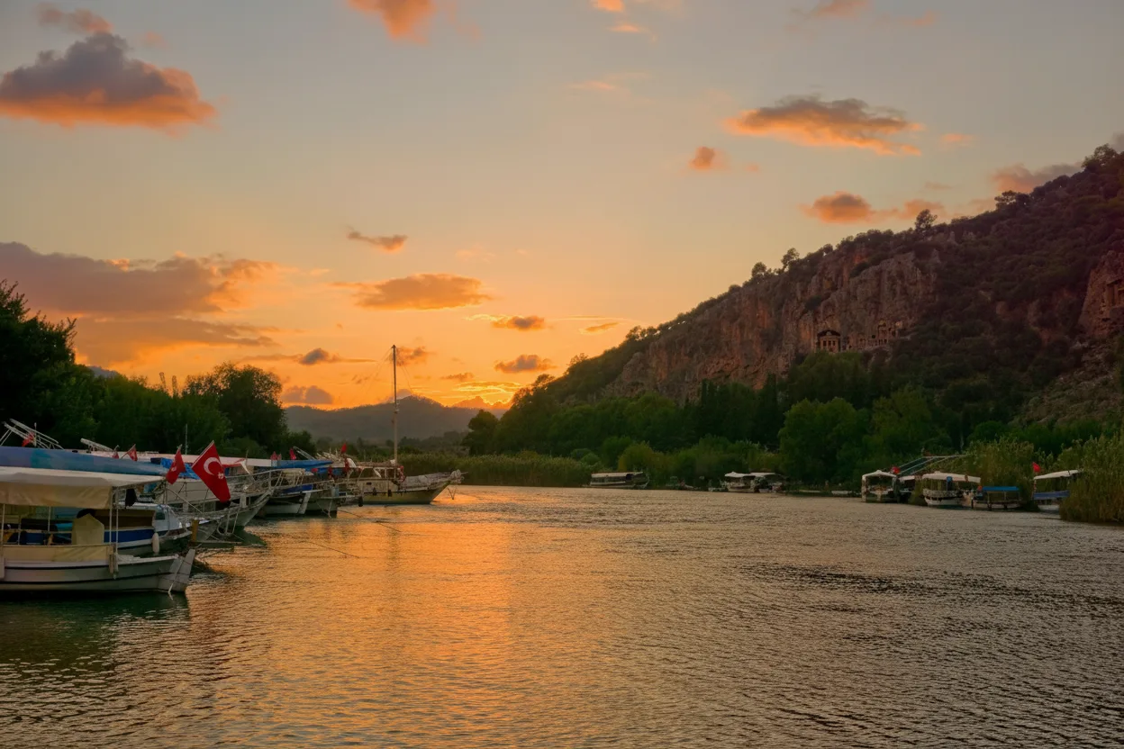 Dalyan River is a calm and scenic river located in the Muğla region of Turkey. It is known for its natural beauty, relaxed atmosphere, and gentle boat tours through reeds, wildlife areas, and historical landscapes.