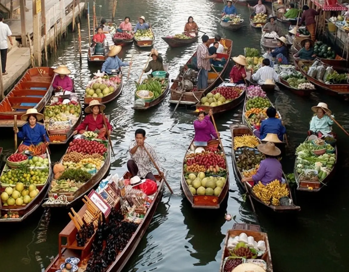 • 8:00 AM – Arrive 🧭 and explore the floating market 🛶🛍️👀