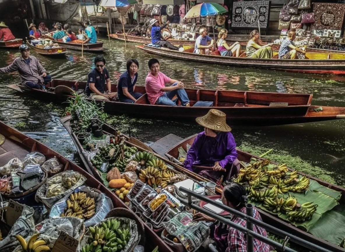 • Explore the floating boats 🛶 selling local Thai snacks 🌮 and tropical fruits 🥭🍍😋