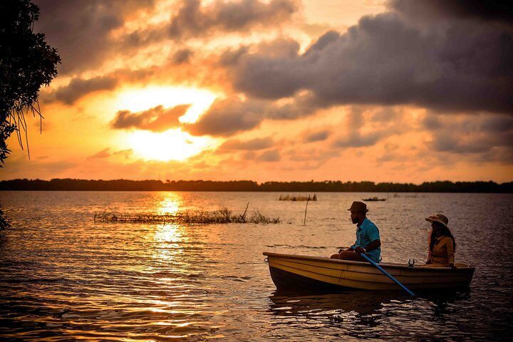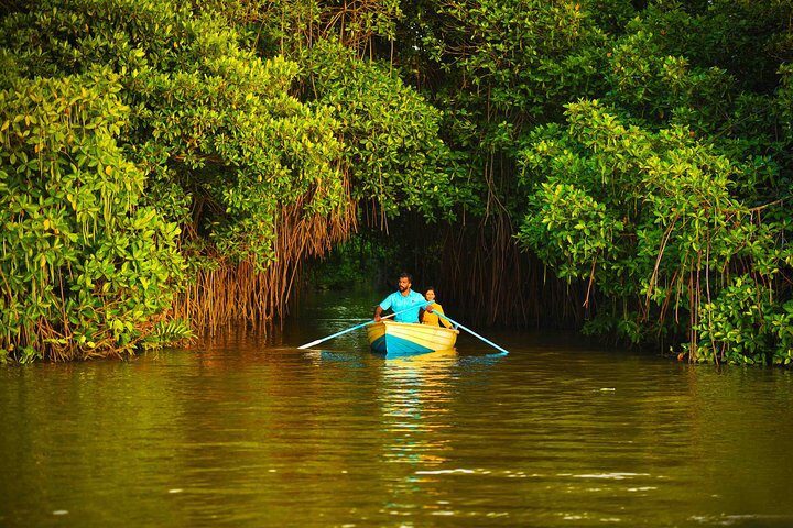 Highlights of Dandugama Oya Boat Safari Point:- Boat Safari: Take a guided boat ride 🛶 along the calm river and enjoy the natural beauty of mangrove forests 🌳.