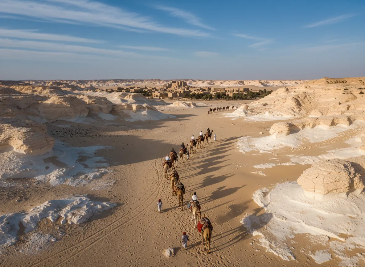 Desert walking routes in Egypt’s White Desert allow travelers to explore the landscape on foot through short, guided paths. These routes pass chalk formations, open plains, and gentle hill slopes. Walking through the desert provides a closer connection to the environment, revealing textures, footprints, and small geological details often missed from vehicles.