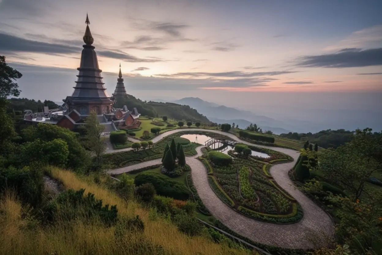 - Doi Inthanon Summit ⛰️: The highest point 👑 in Thailand 🇹🇭, offering breathtaking mountain views 👀🤩