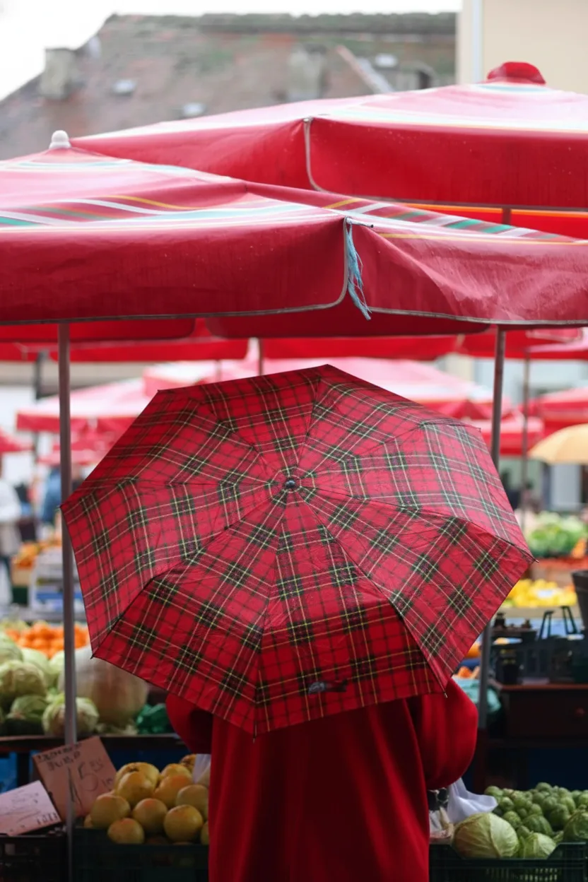 - 📸 Take vibrant photos of the colorful stalls protected by the signature bright red wooden umbrellas of the central plaza ⛱️ 🤳