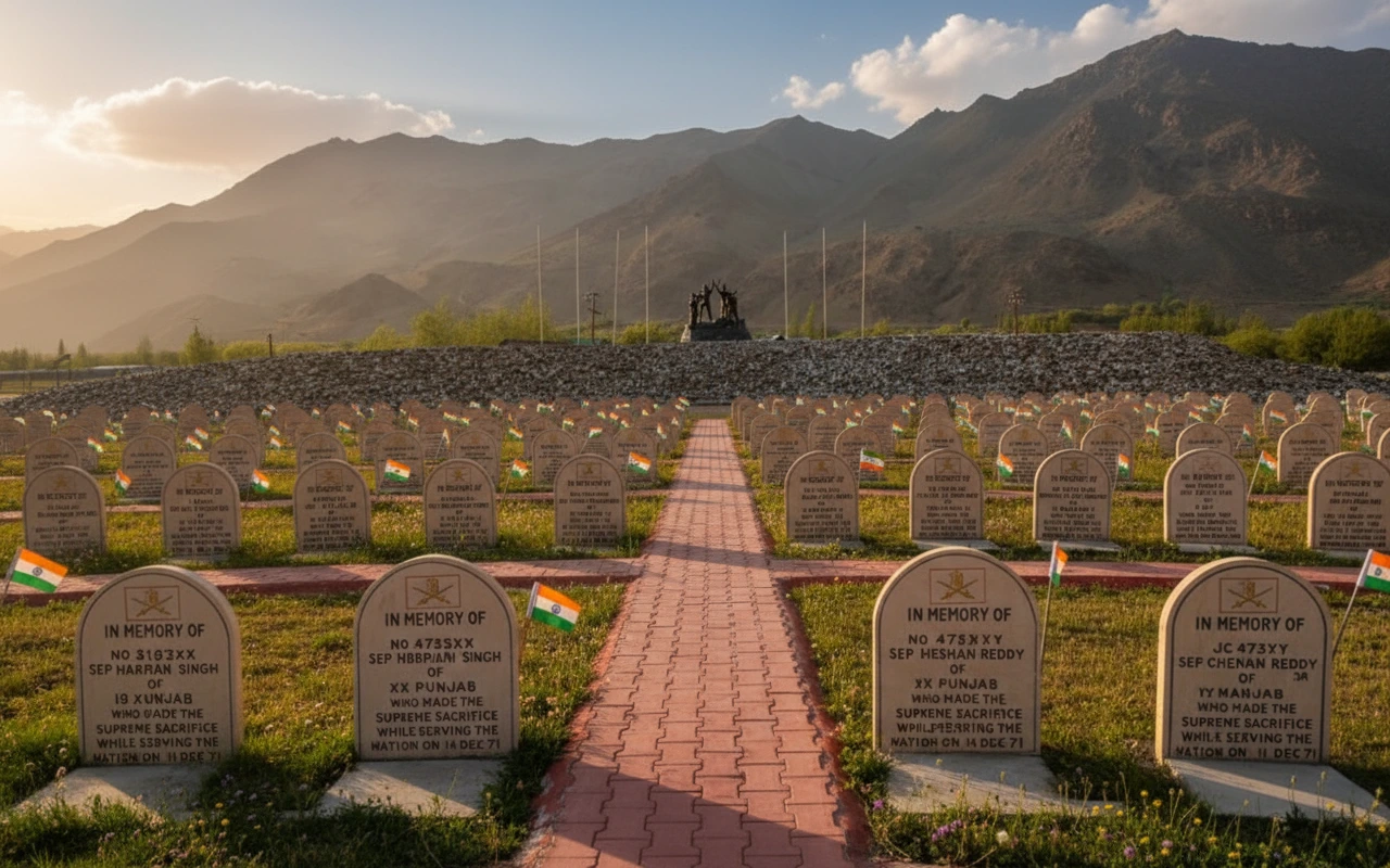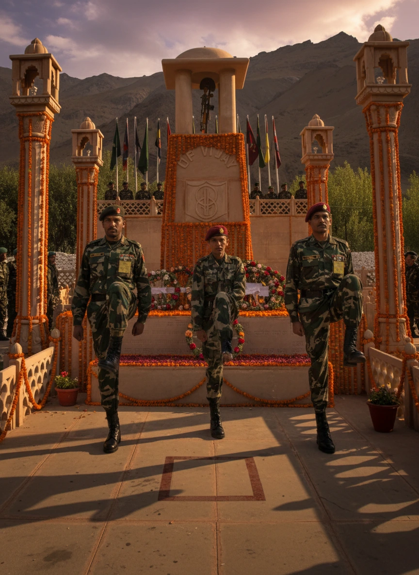• 🇮🇳 View the golden Memorial Wall (Wall of Heroes) honoring fallen bravehearts 🕯️.