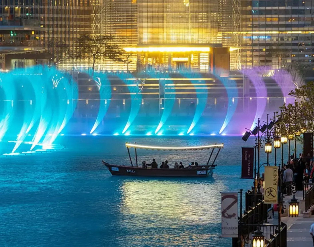 attractions in Downtown Dubai. Known for its synchronized light, music, and water performances,