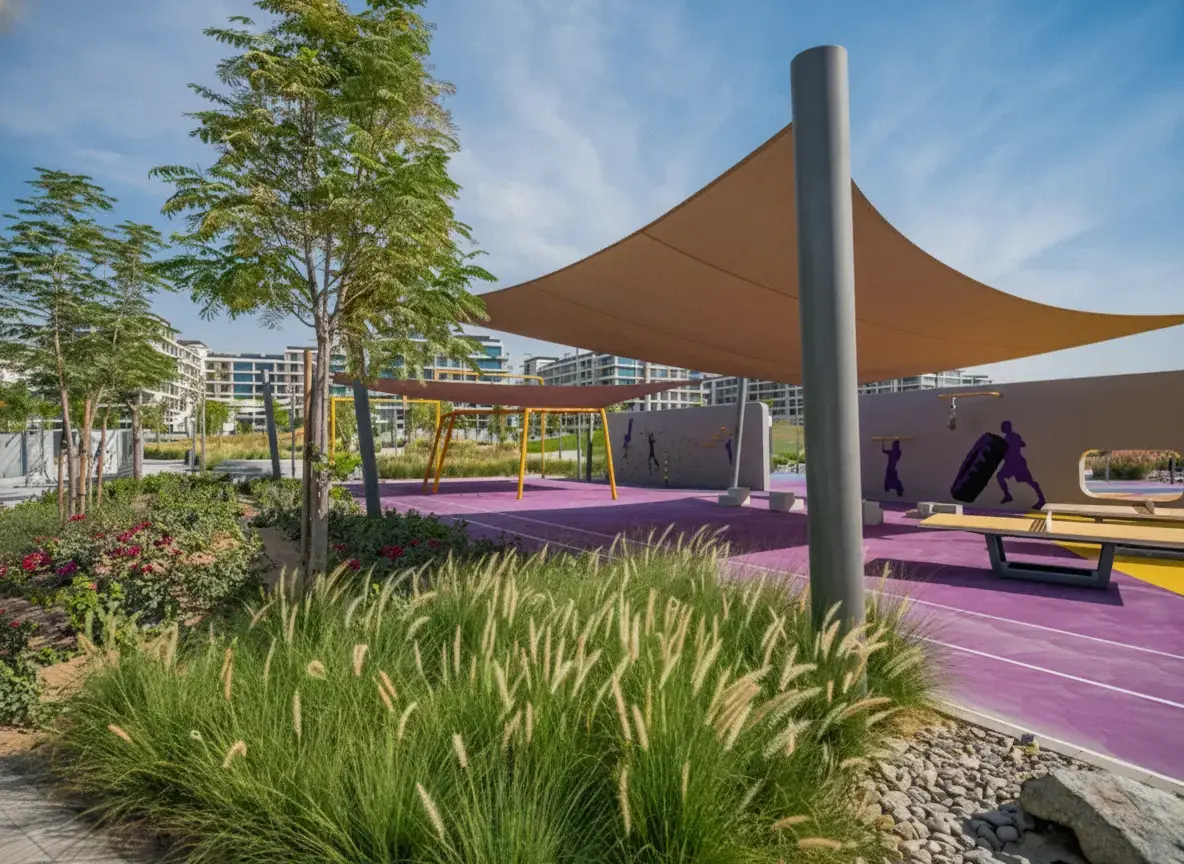 shaded walkways, play zones, and jogging tracks, making it perfect for families, fitness