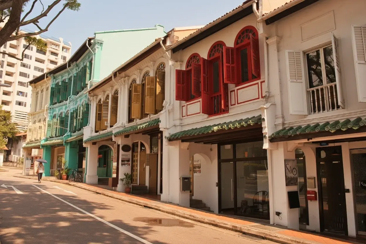 • Stroll 🚶‍♀️ through leafy streets 🌳 lined with beautifully restored shophouses 🏘️✨