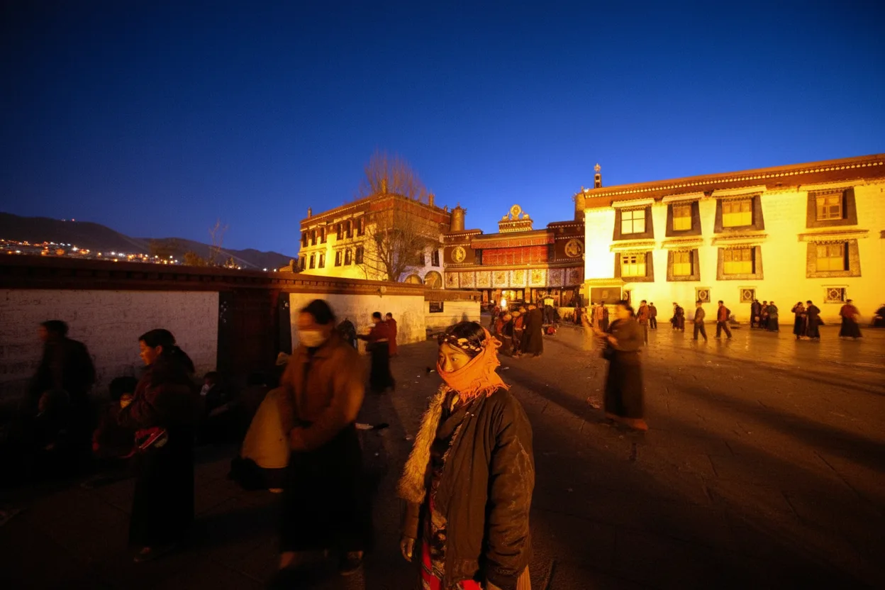The Early Morning Pilgrim Area around Jokhang Temple and Barkhor Street is
