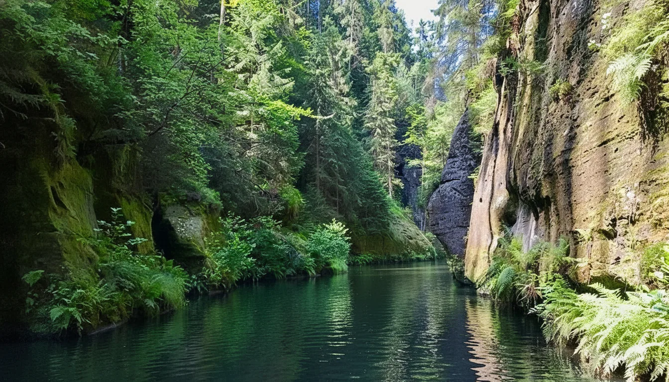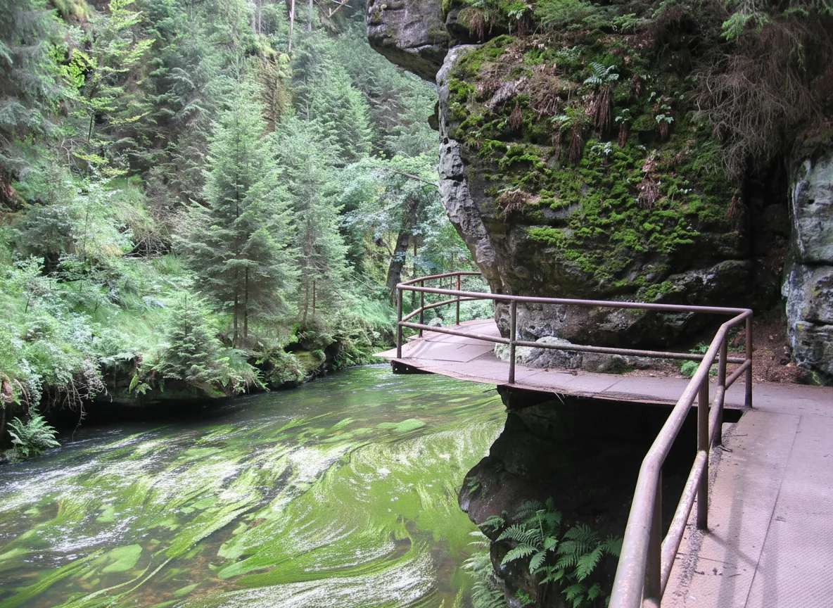 Edmund Gorge is a narrow sandstone canyon located in Bohemian Switzerland National Park in Czechia. The gorge is