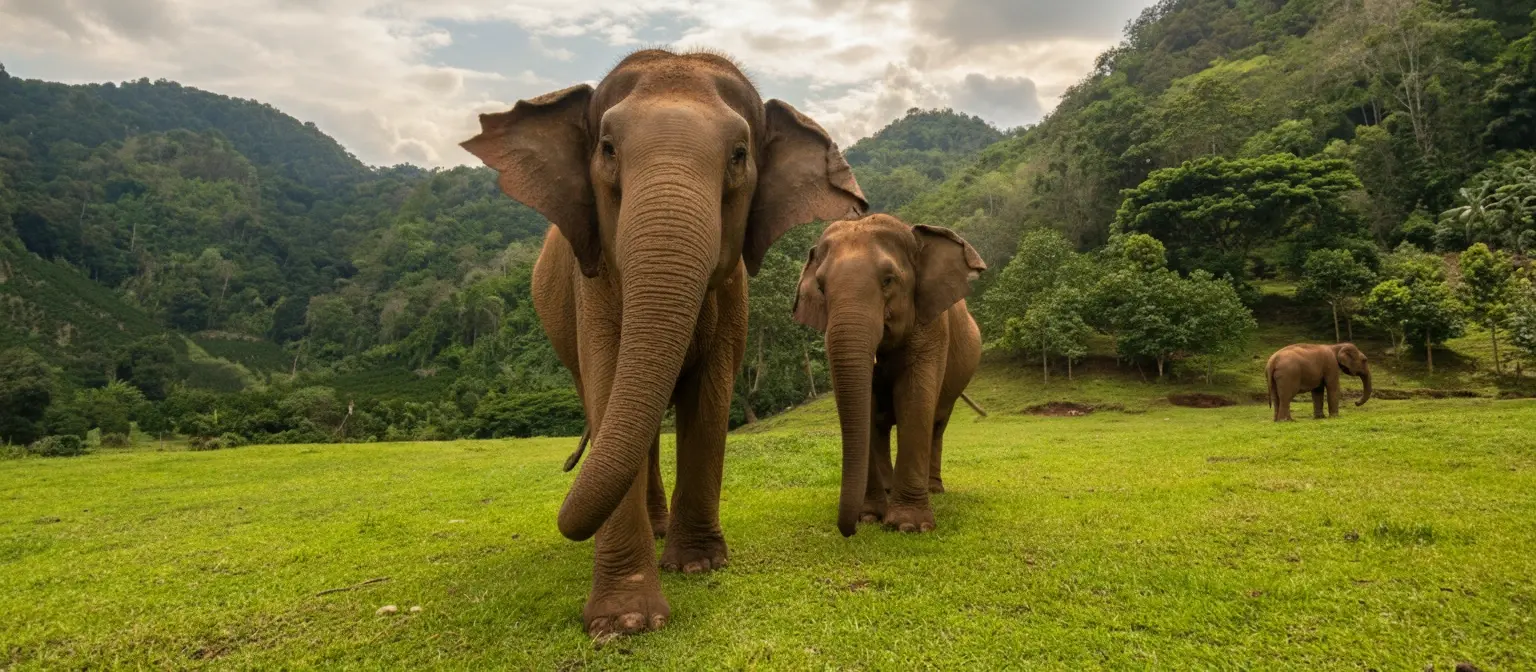 Elephant Nature Park, located about 60 kilometers north of Chiang Mai, is a sanctuary dedicated to rescuing and rehabilitating elephants that were once used in logging, tourism, and entertainment. Founded by Lek Chailert, the park focuses on ethical elephant care, providing visitors a chance to observe these majestic creatures in a natural and cruelty-free environment.