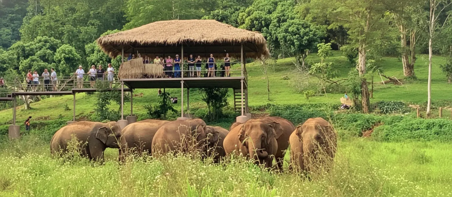• 9:00 AM – Arrive 🧭 at Elephant Nature Park 🐘🌳