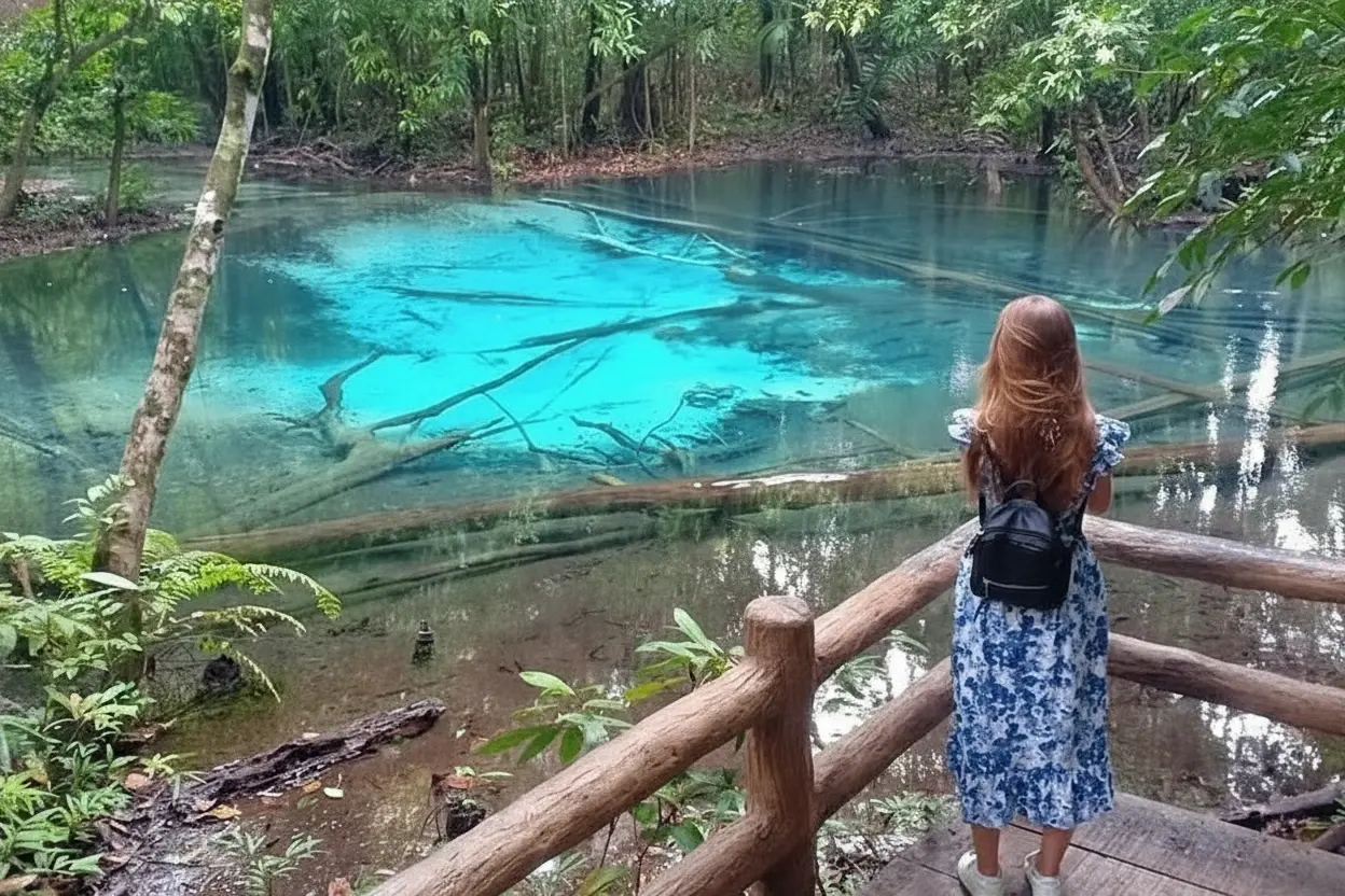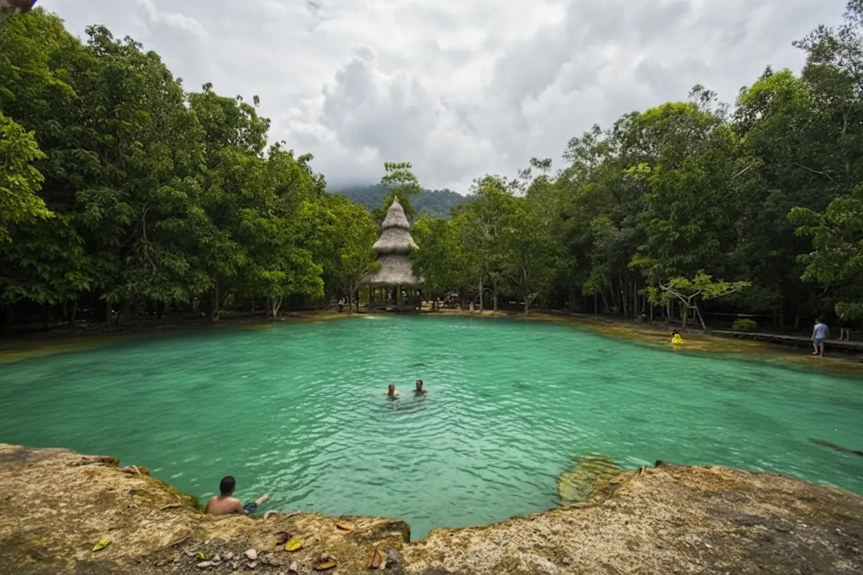 Emerald Pool, also known as Sa Morakot, is a stunning natural hot spring pool located in the Khao Phra Bang Khram Nature Reserve near Krabi, Thailand. Renowned for its clear emerald-green waters surrounded by tropical forest, this hidden gem offers visitors a refreshing place to swim, relax, and connect with nature. The area’s rich biodiversity and serene atmosphere make it a must-visit eco-destination for travelers seeking a natural escape.