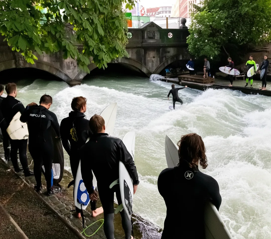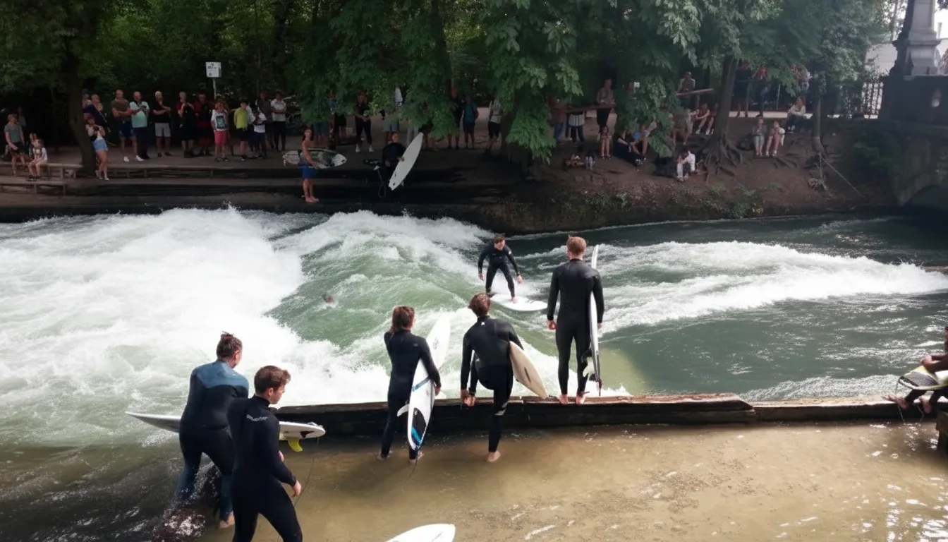 • 🏄 10:30 AM – Visit the Eisbach Wave to watch the surfers 🌊 master the constant urban current 🤙