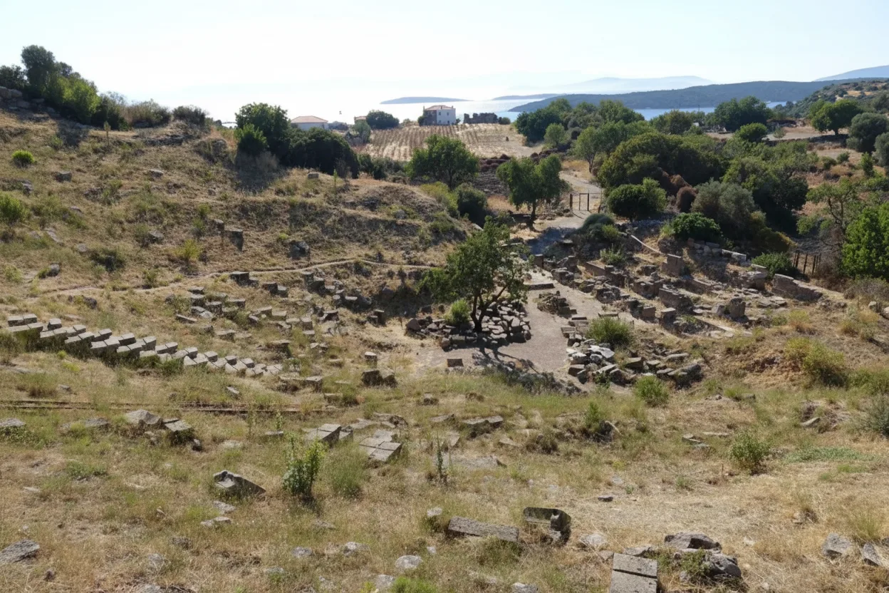 the Aegean coastline. The site reflects the cultural and historical heritage of
