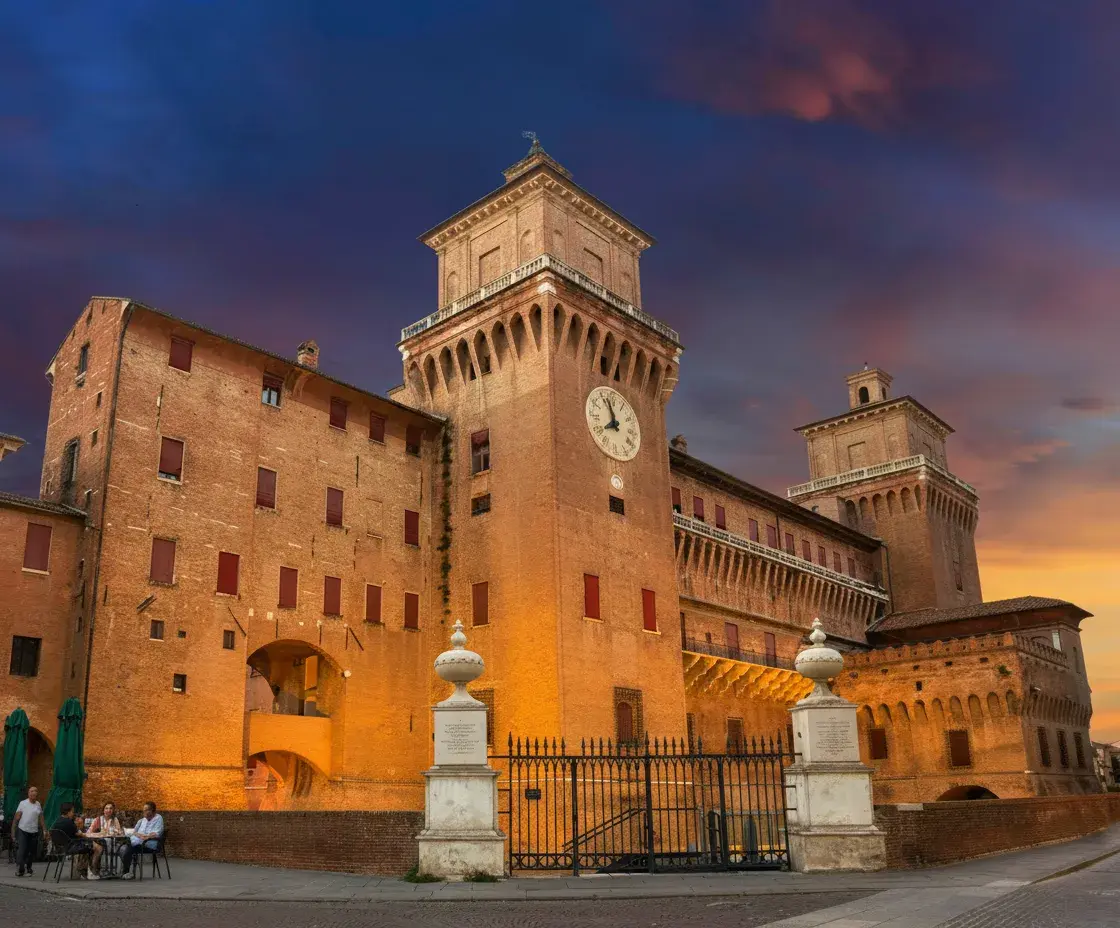 • 10:00 AM – Enter 🚪 Castello Estense 🏰 and explore the courtyards 🌳👀