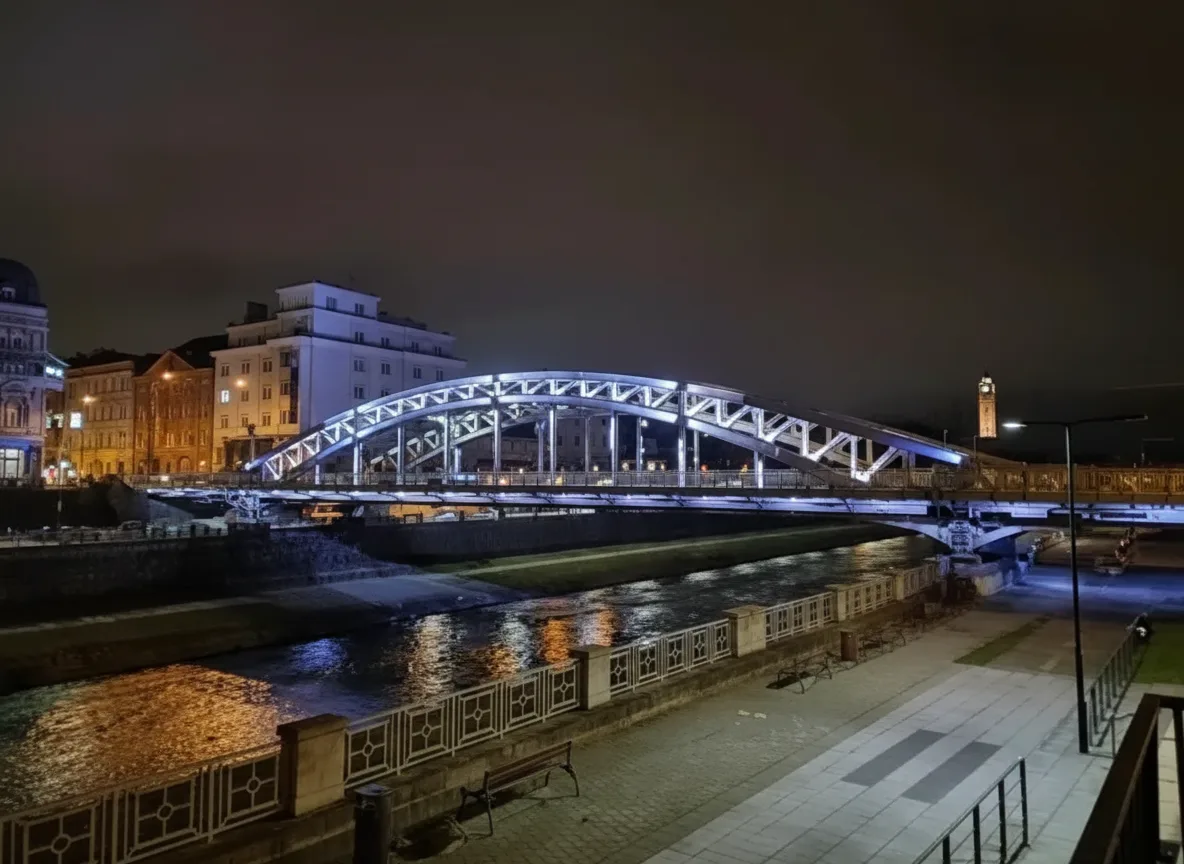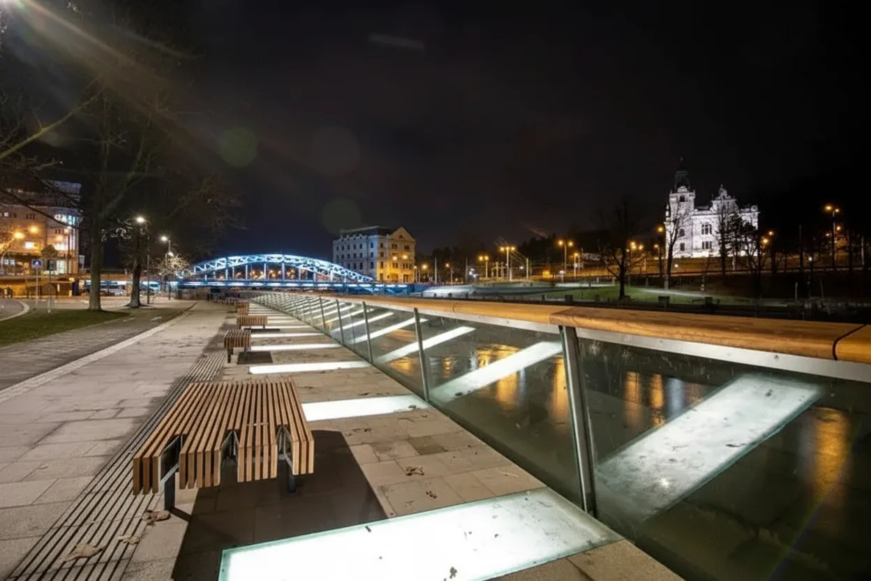 - 🌊 Enjoy city lights and reflections 🎆 along the Ostravice River for a romantic and calming view 🌙