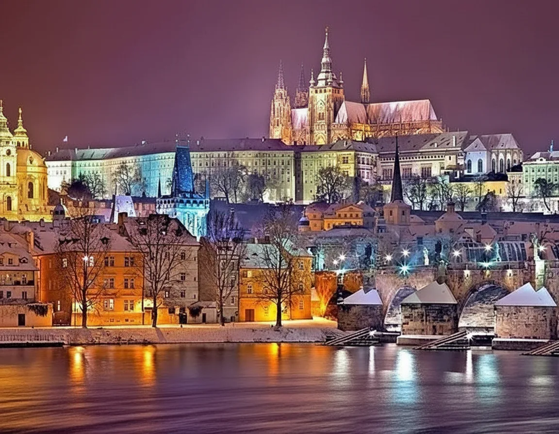 • 🏛️ Admire the beautiful architecture glowing against the dark sky 💡