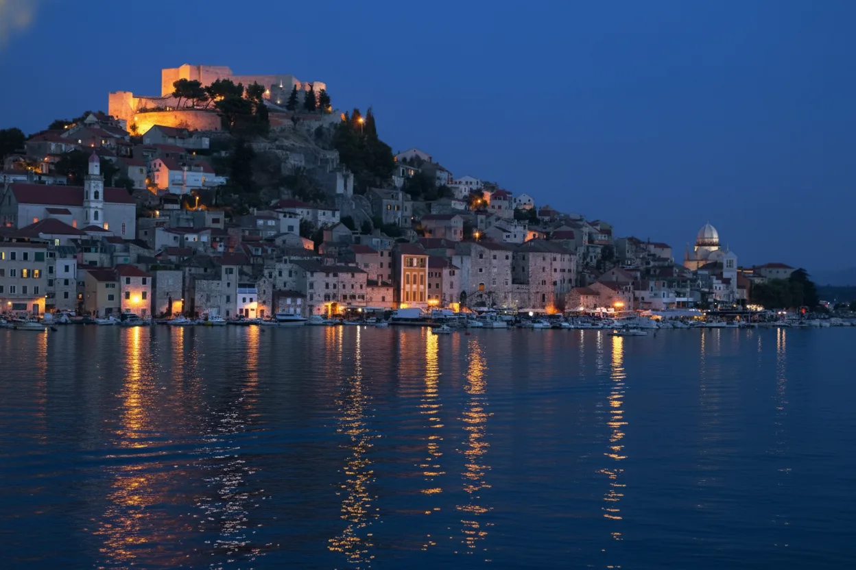 Evening walks through Šibenik Old Town reveal a calmer and more atmospheric side of the city. As daylight fades, stone streets soften under warm lights, creating a relaxed and romantic setting for exploration. Walking in the evening allows travelers to enjoy cooler temperatures, quieter streets, and local life after the daytime crowds disperse. The old town’s historic architecture and small squares feel especially inviting at night