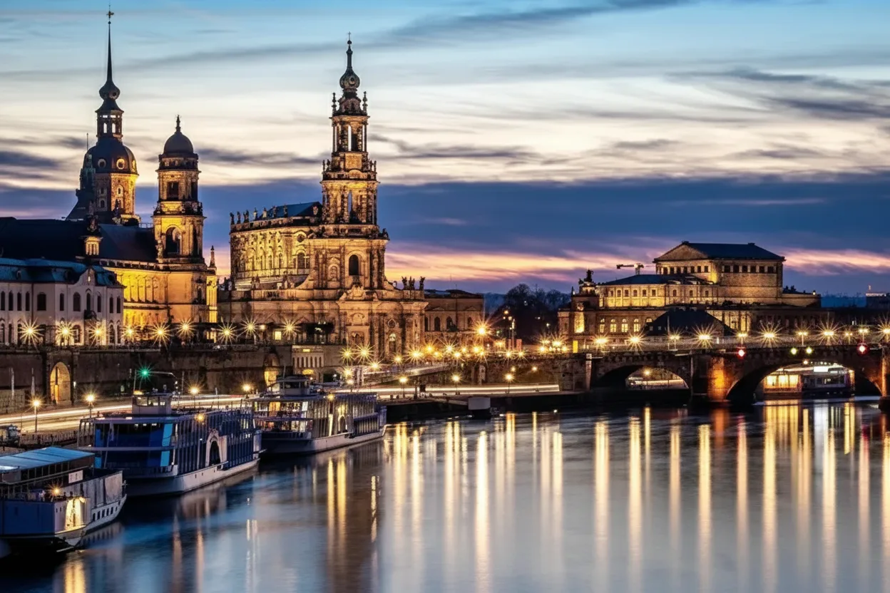 • 🌊 Enjoy the mesmerizing and 🎨 colorful reflections on the calm Elbe River surface 🌅