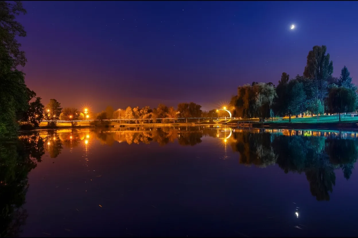 • 📸 Capture the perfect night photography shot from the scenic riverbanks. 🌃