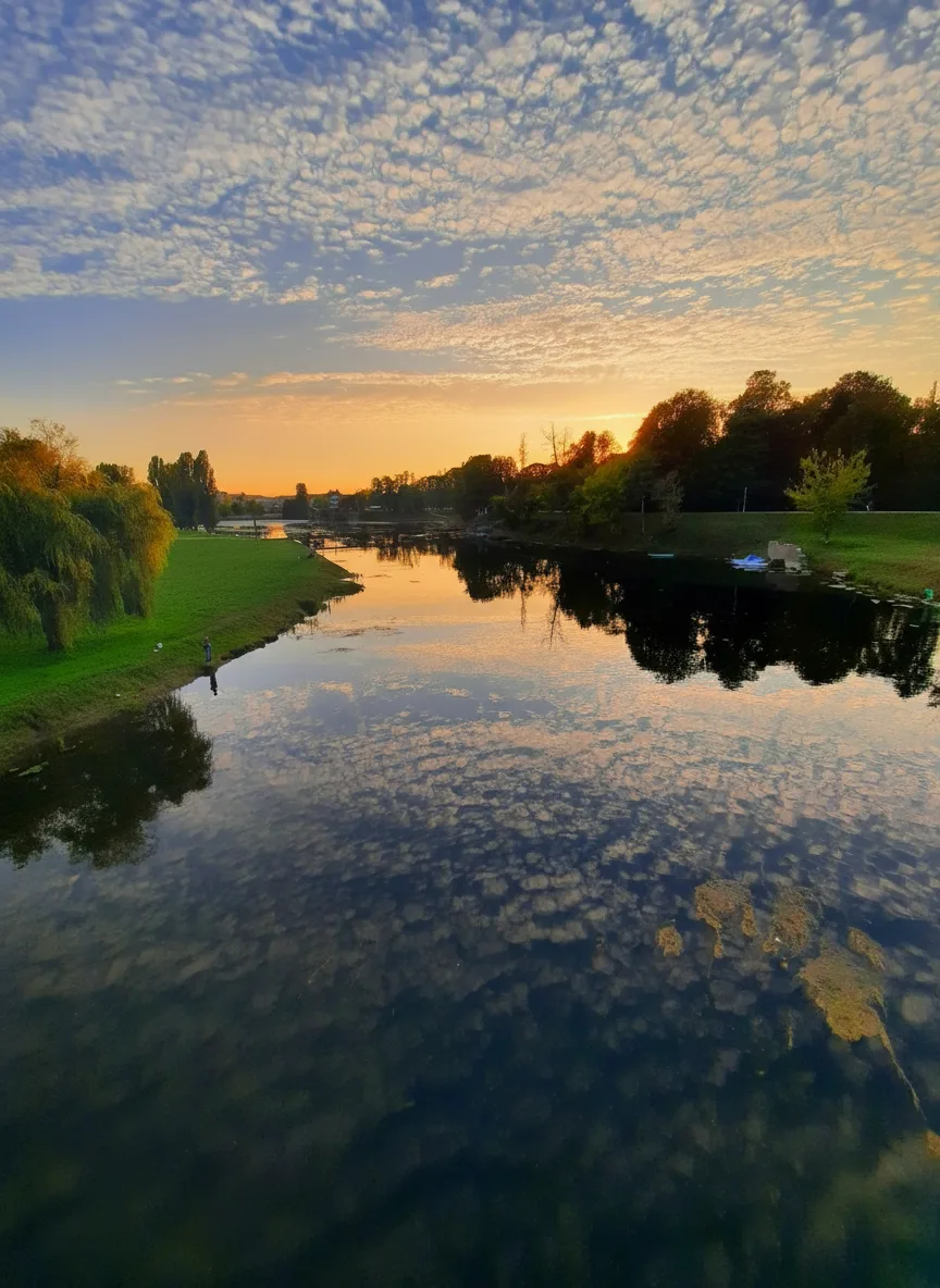 Evening river walks along the Brda River offer one of the most peaceful experiences in Bydgoszcz, Poland. As the city lights reflect on the water, the riverbanks become ideal for relaxing strolls, quiet moments, and scenic photography after a busy day of sightseeing.
