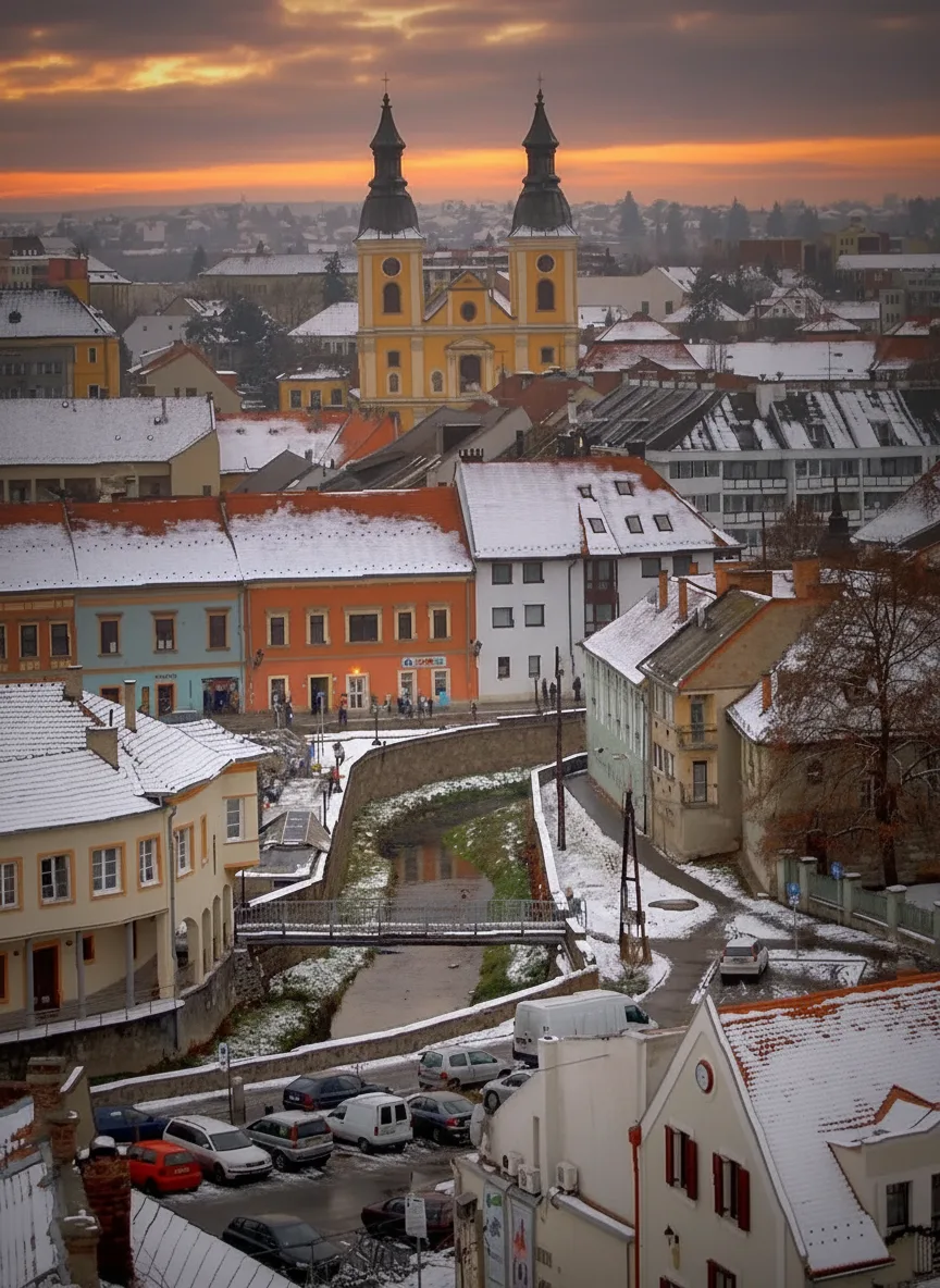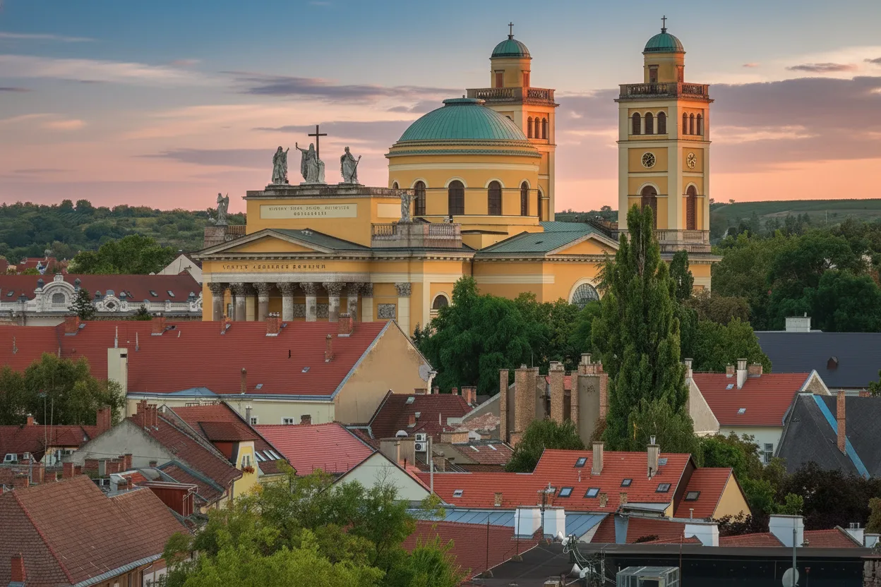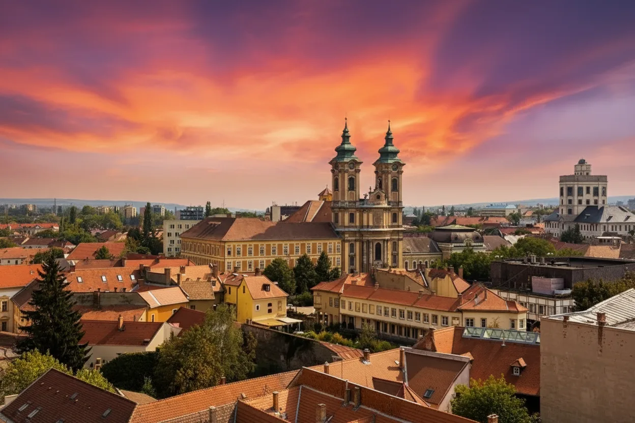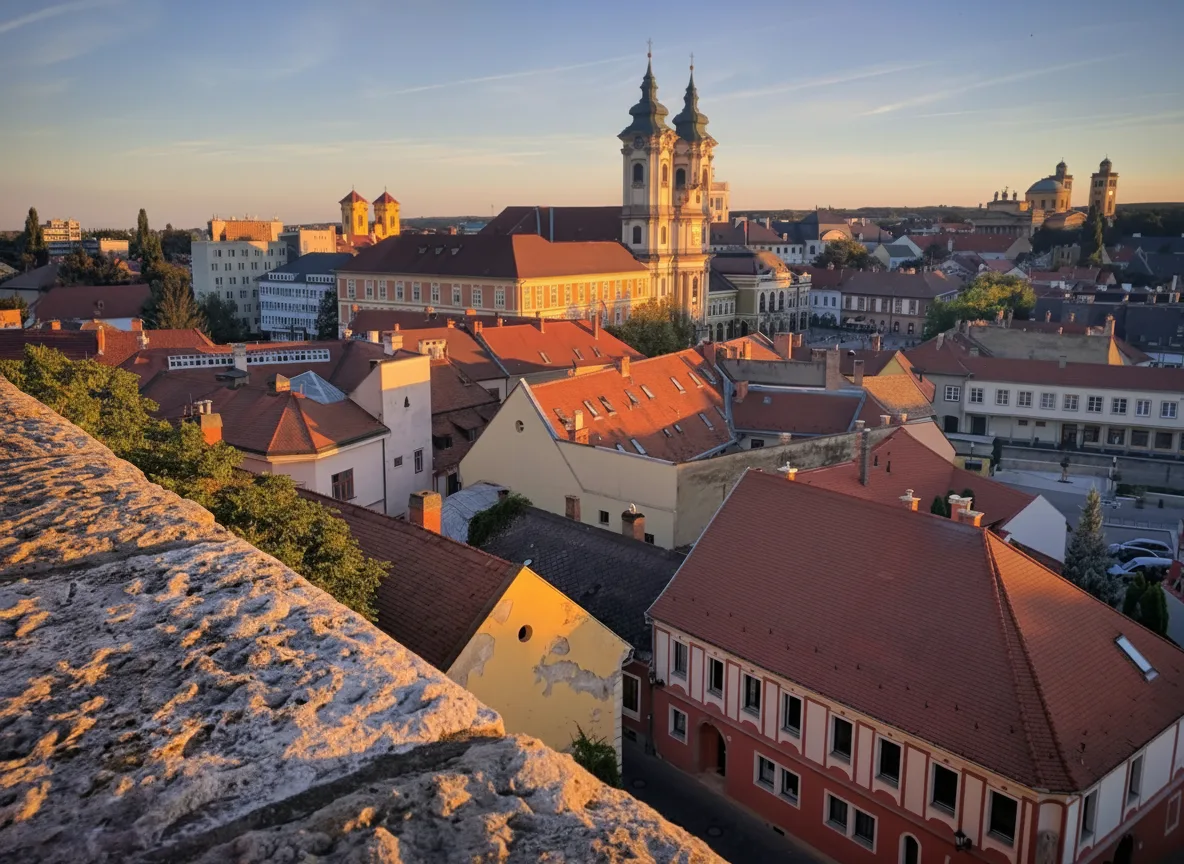 • 🌅 Watch the golden ☀️ sunset over Eger rooftops 🏠