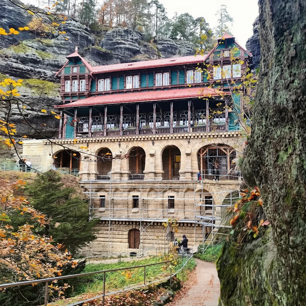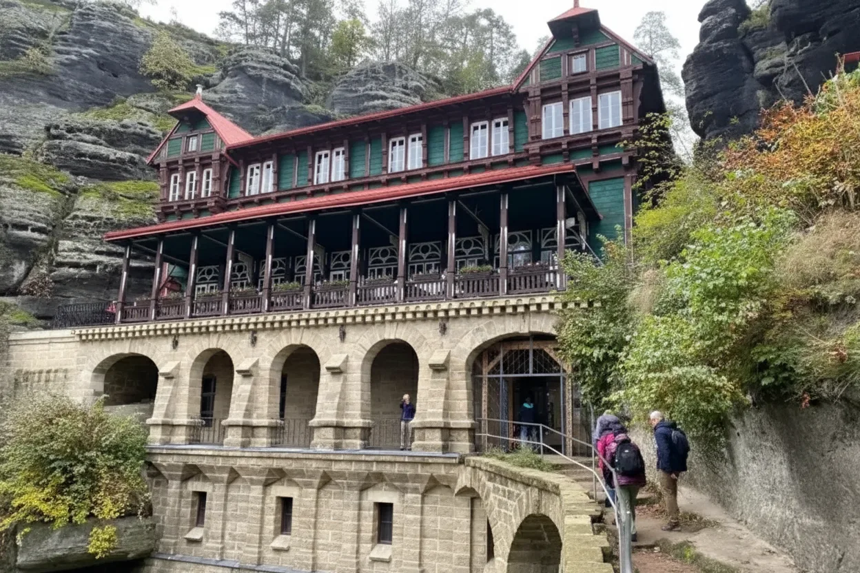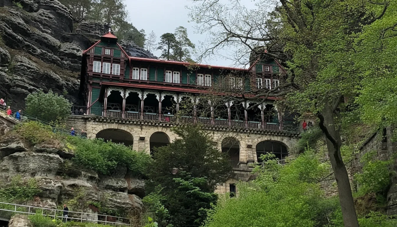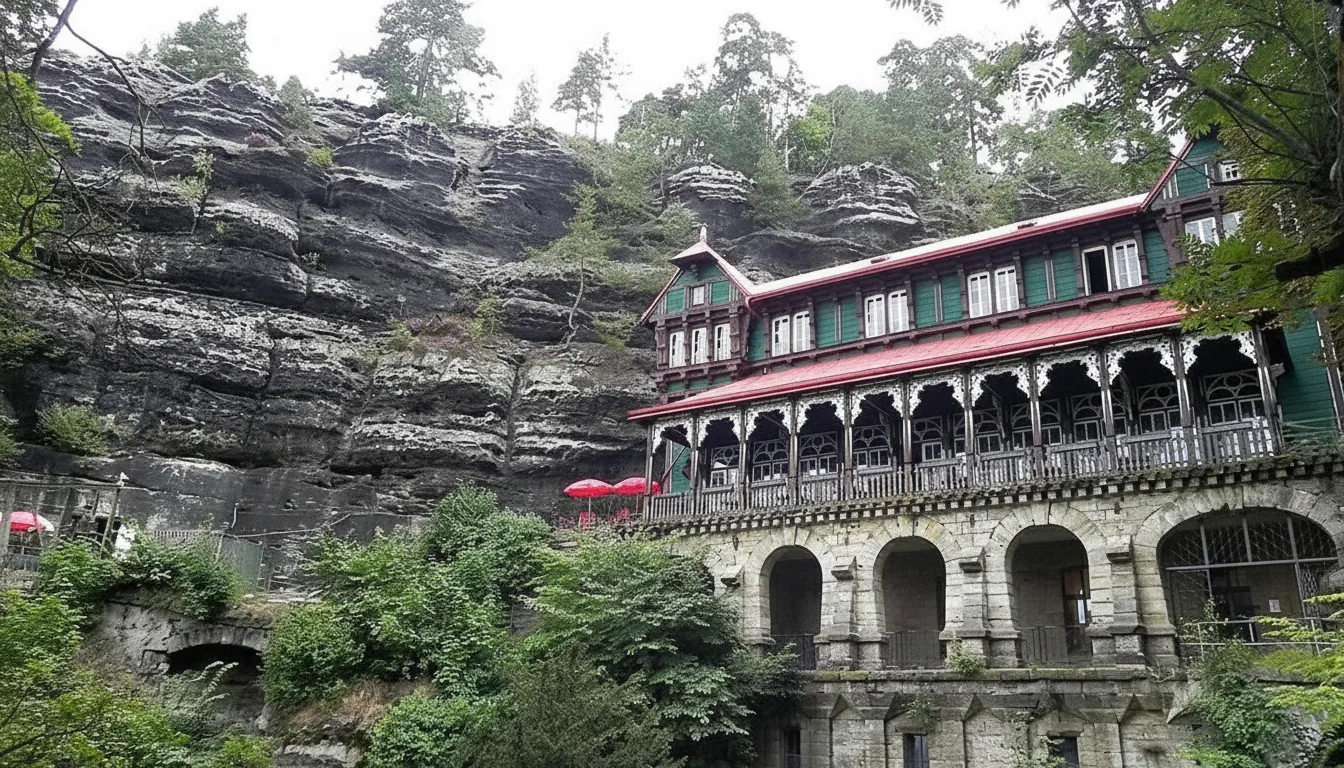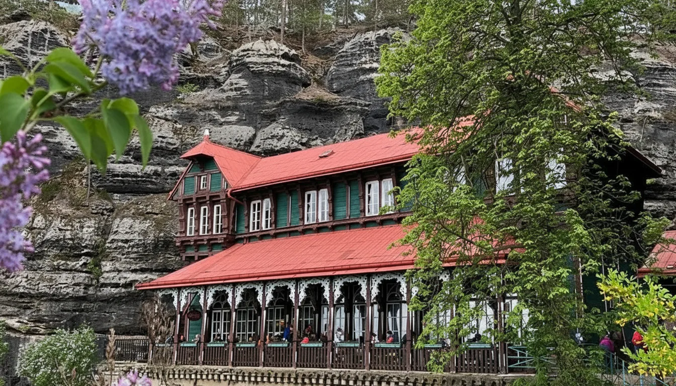 Falcon’s Nest is a historic lodge built into the sandstone rocks near Prav■ická Gate. The building dates back