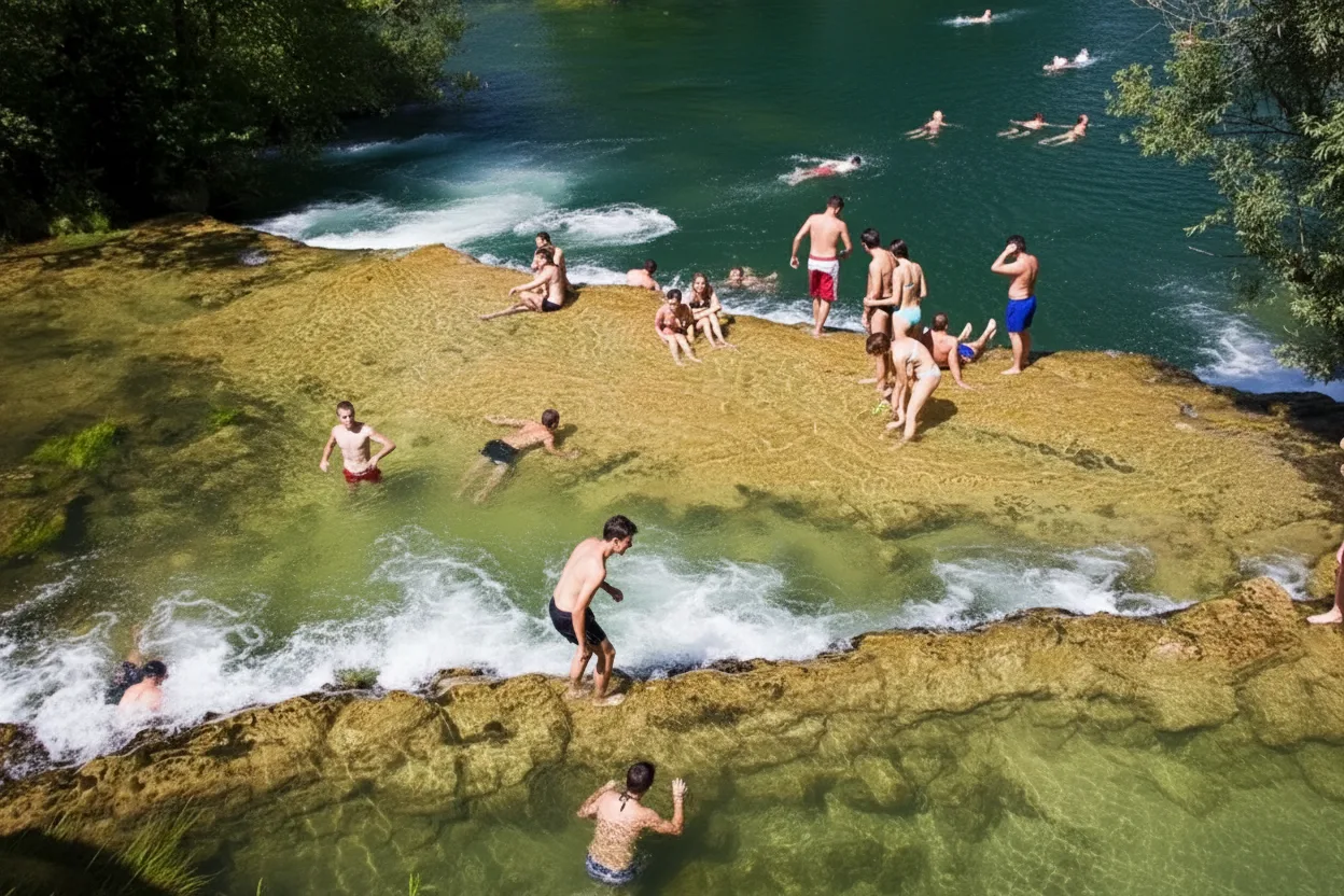Family bathing areas along the Mrežnica River are calm, shallow sections suitable for children and relaxed swimming. These areas are naturally protected from strong currents and offer easy access to the water. The gentle river flow and clear freshwater make these spots popular with families, providing a safe environment for swimming, playing, and enjoying time together outdoors. For travelers, family bathing areas offer a comfortable and safe way to enjoy the river, especially when visiting with children or older family members.